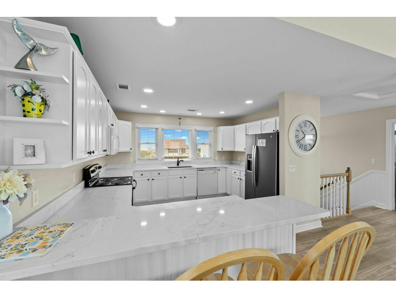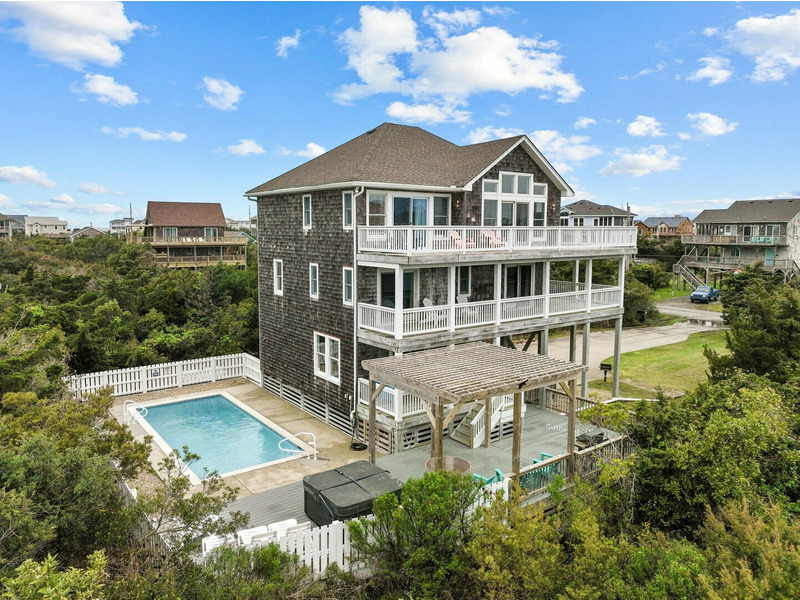 BEACH GEAR RENTAL INCLUDED! Always Included, complimentary linens and made beds! With views of the beautiful blue Atlantic and relaxing outdoor living spaces, C-Waves is perfect for your Hatteras Island vacation! When you arrive at this Salvo vacation home, you’ll be greeted with under house parking along with your own private in-ground pool and 6-person hot tub. Step inside into the fun nautical game room complete with pool table, TV and stereo. You’ll also find the laundry room on the first level. Head upstairs to the second level where you'll find four bright and nicely decorated bedrooms. Choose from two king master bedrooms – each with their own private full bath, and deck access. On this same level are two additional guest rooms including a bedroom with 2 twins that shares a bathroom with a bunk room featuring two bunk sets. On the top level you’ll discover the main living area including a kitchen with breakfast bar, dining area, and spacious great room featuring cathedral ceilings, HDTV, DVD, stereo, as well as the final king master bedroom with flat screen TV and private full bath.