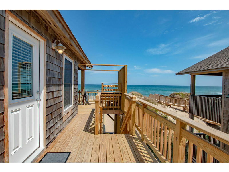 Mid level has 2 queen oceanfront bedrooms with beach views, 2 bedrooms with 2 twins each, 2 full baths, access to oceanfront and west side decks, access to walkway to the beach, and outside stairs to the upper level.