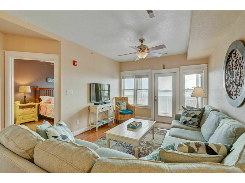 Always Included, complimentary linens and made beds! Soundfront living at it's finest awaits you and your family at 4 Shore! This Landings at Sugar Creek Condo is located at MP16 in Nags Head, overlooking the Roanoke Sound. From your private balcony, there are stunning views and a sunset that you will never forget! There's a community pier that provides direct, private access to the sound for crabbing, kayaking or windsurfing. Nearby are great local restaurants, shopping and numerous family attractions. Jennette's Pier, Jockey's Ridge and Bodie Island Lighthouse are all in close proximity to the property.