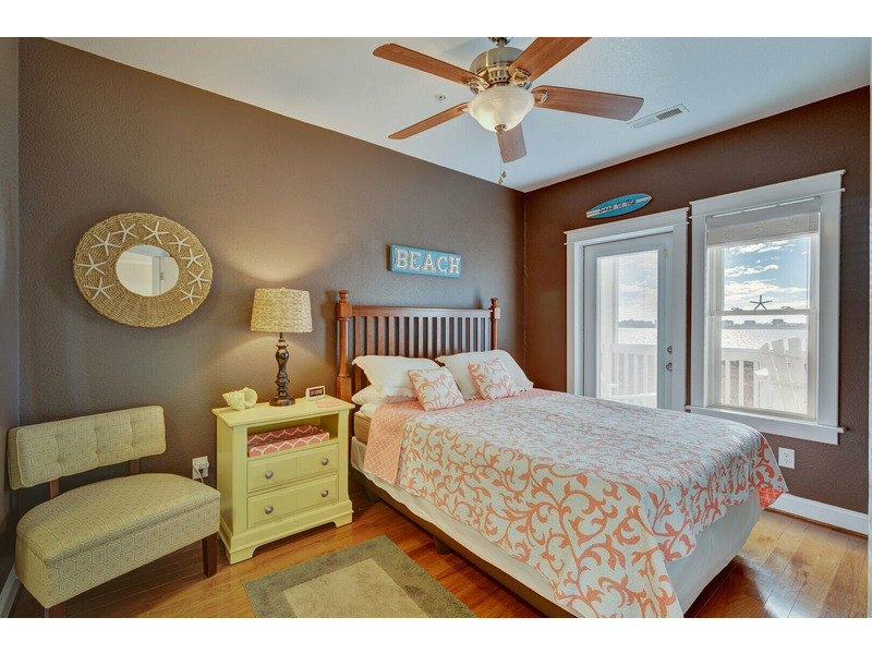 Inside 4 Shore, you'll find a fully equipped kitchen with everything you'll need to prepare meals during your stay. The dining room table features seating for 4 and the breakfast bar provides additional space for 3. As you make your way to the living room, you'll find comfy seating along with a flat screen TV; the perfect place to cool off after a long day at the beach soaking up the sun and splashing in the ocean. Each bedroom features a Queen sized bed and flat screen TV, both with their own private bathrooms. 4 Shore has everything you could need to make your Outer Banks vacation special!