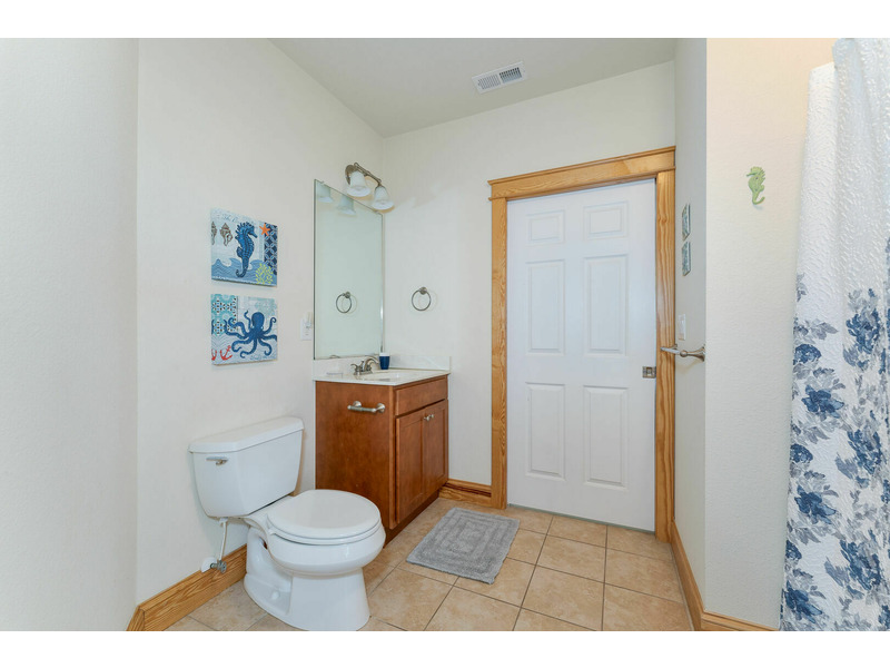 Living Area, Kitchen, Dining Area with Deck Access, Queen Master Bedroom with Deck Access, Queen Bedroom shares bath with Queen Bedroom. Half Bath. Laundry Area.