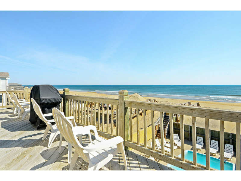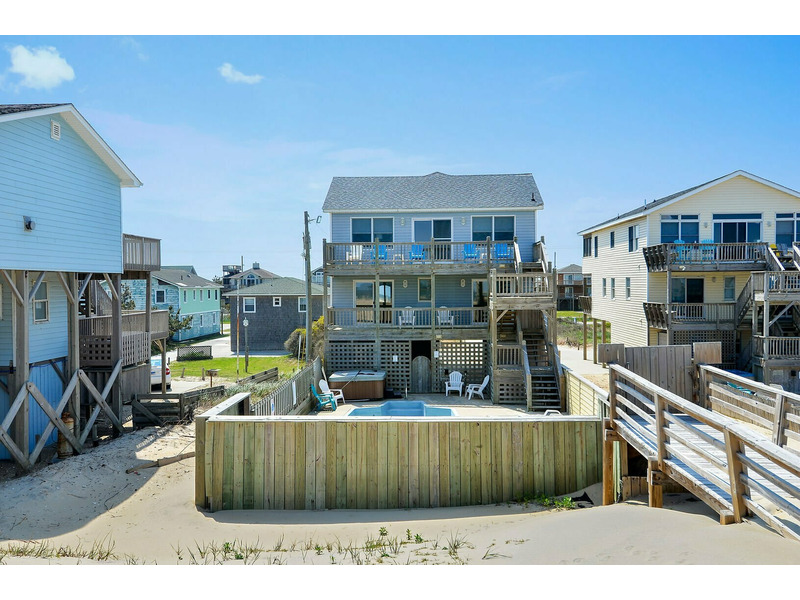 Always Included, complimentary linens and made beds! Great oceanfront home that has enough of everything for a large family vacation in South Nags Head. From your private walk way to the ocean or utilizing the pool and hot tub this home offers something for everyone to enjoy. Enjoy HD flat screen TVs and DVD players throughout home, wet bar, game room with foosball table, PS4 (bring your own games), and enough decking to enjoy sunrises and sunsets. Located at Milepost 19, you are minutes from outlet shopping, the Lost Colony, and Island State parks for those rainy days.