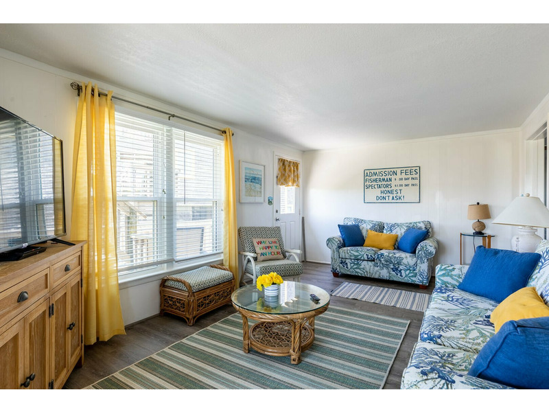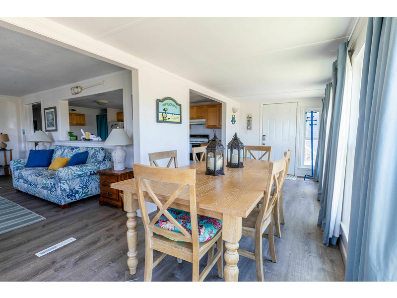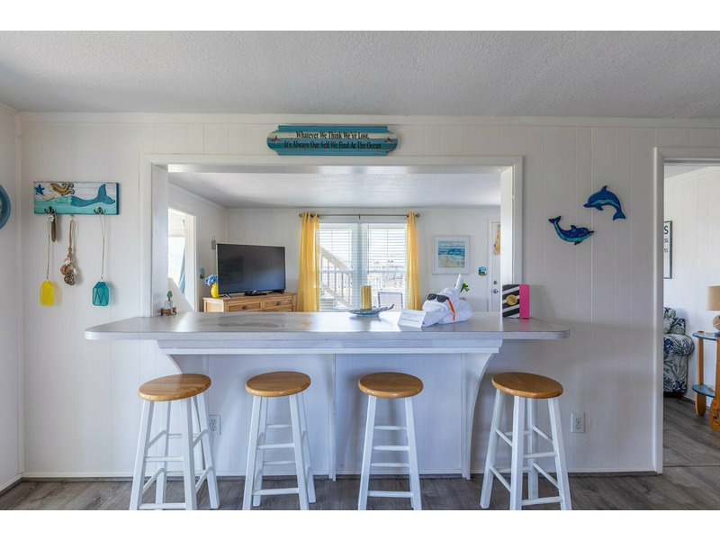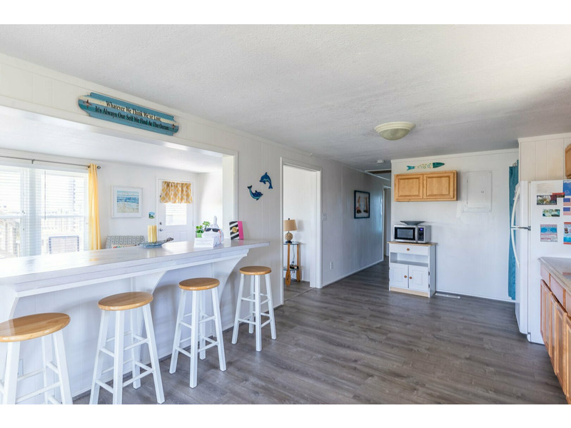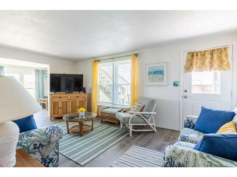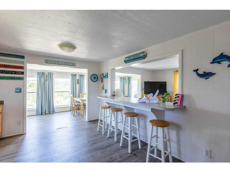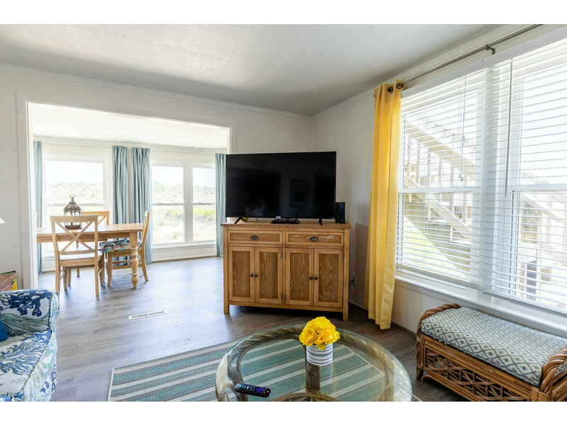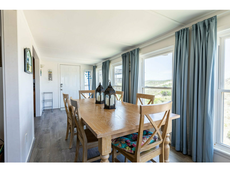 Inside Summerset, enjoy a spacious living area with flat screen TV perfect for gathering the whole fam after a day well spent splashing around in the ocean and soaking up the sun. The kitchen is spacious, well equipped, and has everything needed to prepare meals during your stay. The dining room seats 6 and gives you picturesque views of the dunes leading to the beach. This Frisco home also features an upper deck that overlooks the ocean; making it the perfect place to catch a beautiful Outer Banks sunrise with your cup of coffee in the morning. Summerset Features 1 King bedroom, 1 Queen bedroom, and a bedroom with 2 twin beds. Everyone has a place to lie their head at the end of a fun day on the Outer Banks.