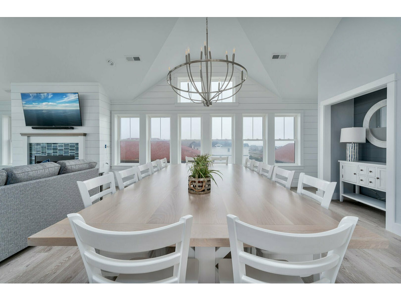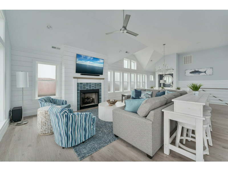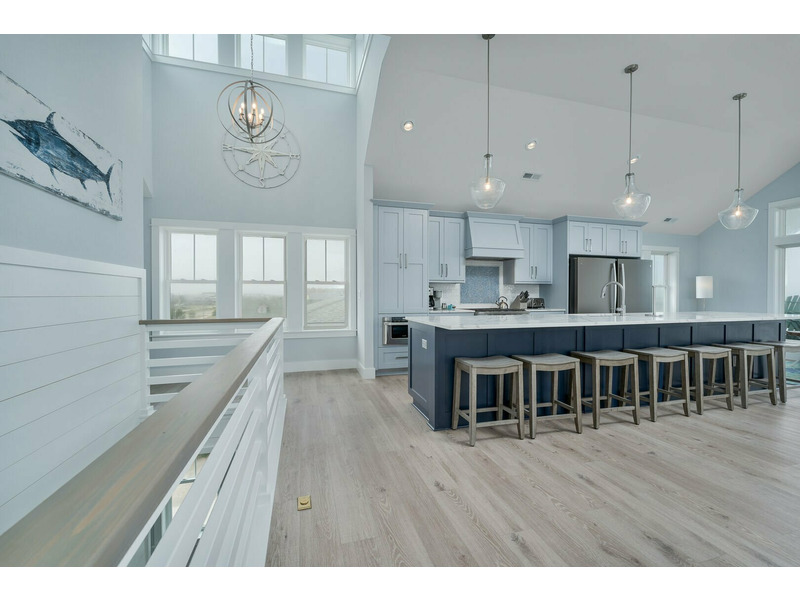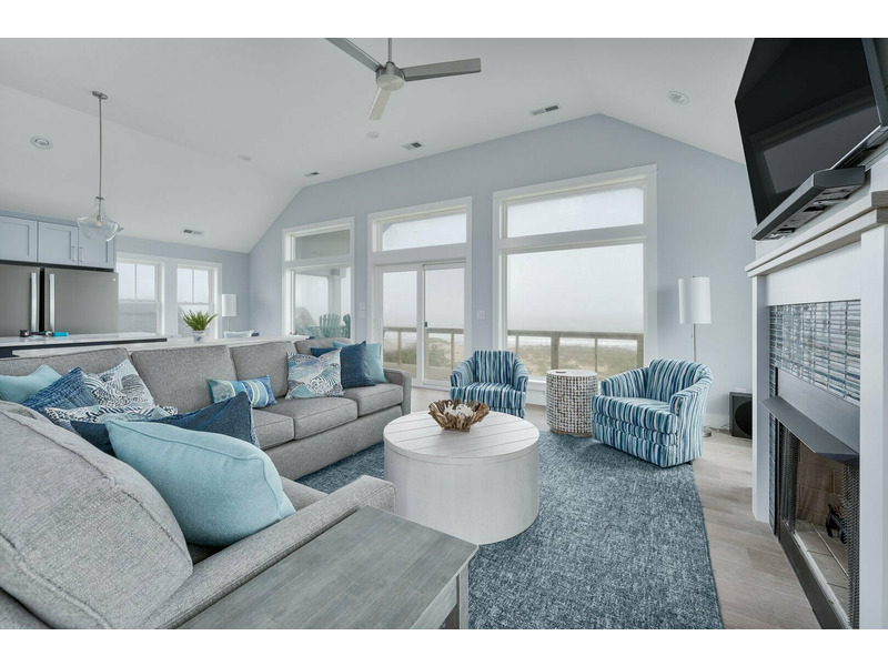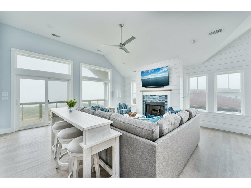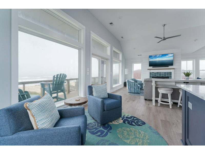 Living Room with Flat Screen TV, Gas Fireplace and Oceanfront Views, Kitchen with Center, Island, Quartz Countertops, 2 Dishwashers, Gas Stove, 2 Refrigerators, Bar Seating 6, Dining Area Seating 18, Sound Facing King Master Bedroom with TV and Deck Access, Sound Facing King Master Bedroom with TV, Half Bathroom, Elevator Access.