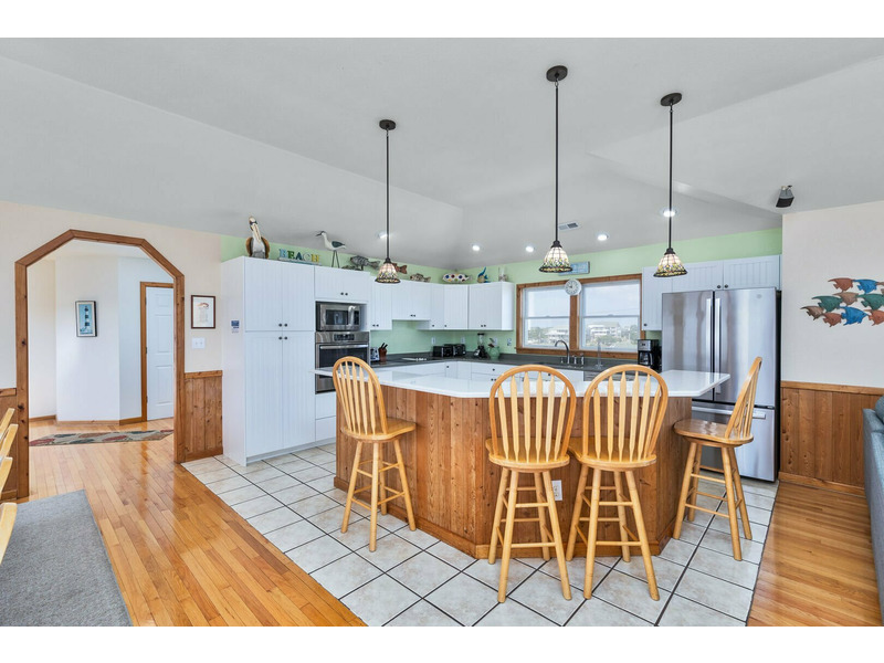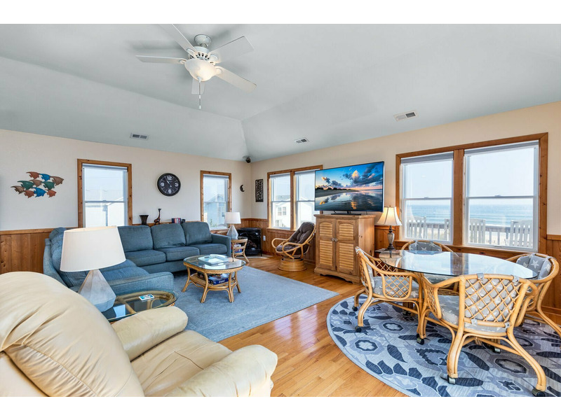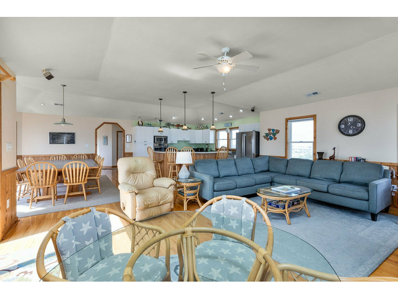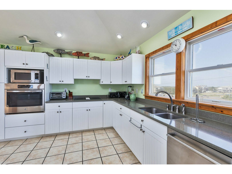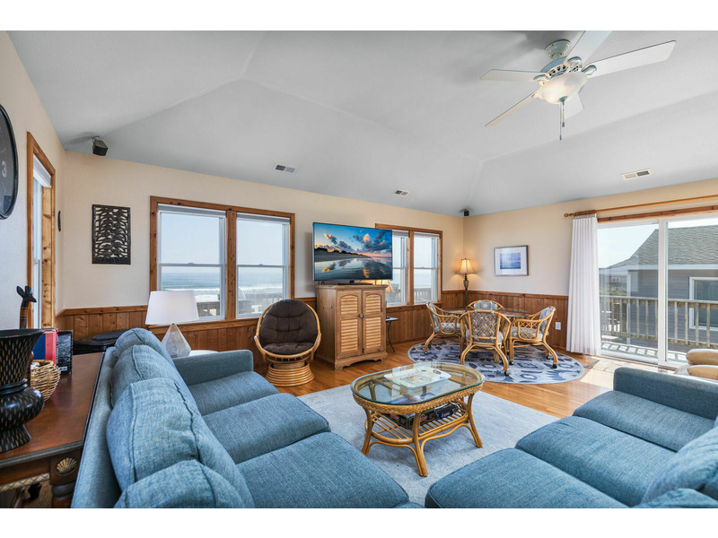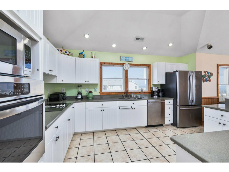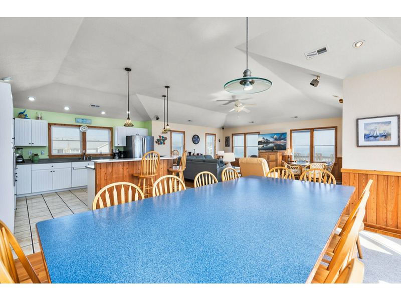Upstairs at Moonstruck, enjoy quality time with your family and friends in the open and spacious living area. With plenty of seating, a flat-screen TV, and beautiful ocean views, it's the perfect place to gather. The living area gives you direct access to the sun deck where you can sit back and relax in a rocker and enjoy your morning coffee while watching the sunrise over the ocean. When it's time to prepare meals, Moonstruck features a fully equipped kitchen complete with stainless steel appliances and everything you need to cook right at your Outer Banks rental home. The breakfast bar has seating for 4 and the dining room table has seating for 14, so there's plenty of space for everyone. Each bedroom at Moonstruck features its own bathroom giving you the privacy and space you need to relax and unwind at the end of your fun-filled day exploring Nags Head! Moonstruck is a South Nags Head oasis awaiting you and your family! Book your stay now!