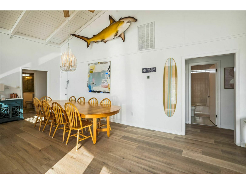 The spacious and open living, dining, and amazingly equipped kitchen area make it perfect for everyone to simply enjoy their time together. The kitchen has ample cabinets and a pantry giving you plenty of room to store your groceries and an oversized sink set in stunning granite. There are two full baths, one of which has a spa-like atmosphere. The full-sized tiled shower features a generous seat, niche to accommodate your bath toiletries, built-in and handheld showers, and a gorgeous frameless door. The generous vanity features a waterfall faucet, plenty of drawers & storage. The baskets below will hold extras for you and there is even a hairdryer for your use and convenience. Once you step inside this exceptionally maintained cottage, you will be amazed at how much your family will love being at Surf House. It has everything you need, such as DVDs, books, games and more. And for you sightseeing joggers Bodie Island Lighthouse is just a 4-mile jaunt away. So, relax, have tons of fun, and make amazing memories at Surf House!