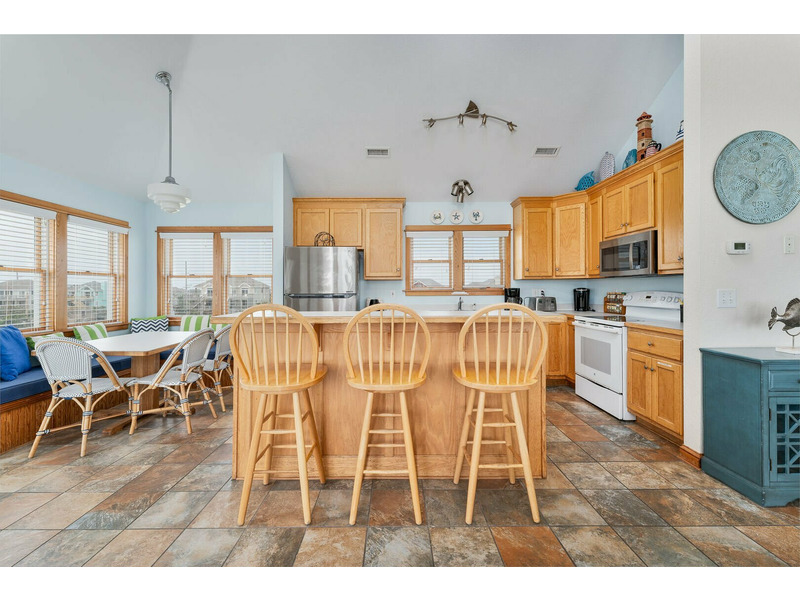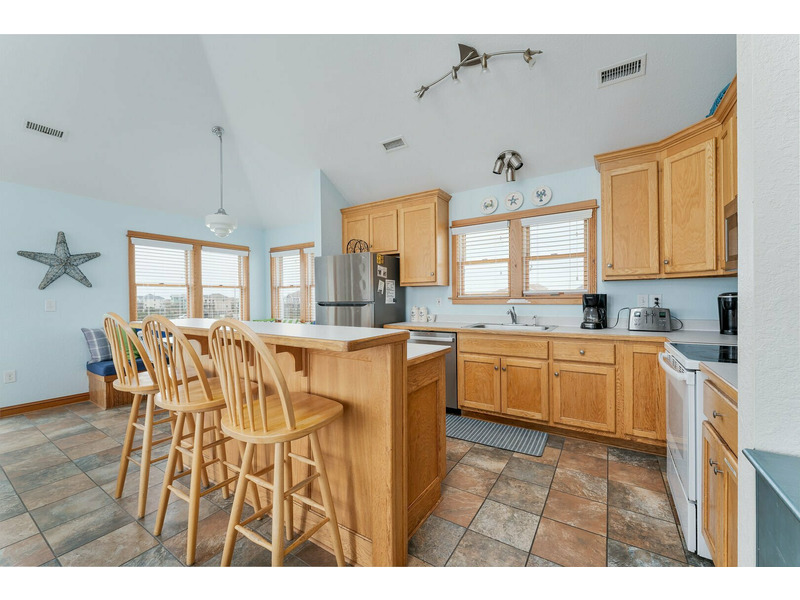 Kinnakeet Community Pool and Tennis Access, WiFi Internet Access, Hot Tub, Direct Beach Access, Oceanfront Views, Porch Swing, Charcoal Grill, Basketball Goal, Outside Shower, Fish Cleaning Table, Rec Room, Pool Table, 2 Mini-Fridges, Wet Bar, 8 TV's, 6 DVD Players, DVD Library, Book Library, Dishwasher, 2 Microwaves, Washer and Dryer, Keurig Coffee Maker, Crock Pot, Gas Fireplace. *Icemaker is not available January - March.