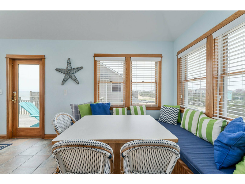 BEACH GEAR RENTAL INCLUDED! Always Included, complimentary linens and made beds! NEW LOOK FOR 2025: The entire house has been painted blue. New deck, windows, and siding on the North and West sides of the house has been completed long with the new deck, windows, and siding on the South and East sides of the house completed in 2024. Weathering Heights gives you the ultimate Hatteras Island experience with unparalleled ocean views and more! Located in the town of Avon, Weathering Heights is nearby great local restaurants, shopping, and entertainment. Head on over to Food Lion, Lalo's Tacos and Pizzeria or Pangea Tavern for a bite to eat or go shopping at Mill Creek Gifts; all located just under a half-mile from Weathering Heights. This 6 bedroom, 5 full with 2 half bathroom Outer Banks rental is also just steps away from the Avon Fishing Pier plus, easy beach access straight from the comfort of your home. Plus, as a guest at Weathering Heights, you'll have access to the Kinnakeet Shores community pool and community tennis courts! While there's plenty to do in the surrounding Avon area, there's plenty of fun to be had at Weathering Heights. Spend some time in the rec room that features a pool table and 2-minifridges for your convenience. Upstairs, an open and spacious living area awaits you; complete with a flat-screen TV. Lounge around and relax with family and friends or step out onto the furnished sun deck and take in the beautiful ocean views. When it's time to eat, the kitchen allows you to make any meal you want during your stay. With breakfast bar seating for 3, dining room seating for 8, and additional breakfast nook seating, there's plenty of space for everyone to dine together. Plus, the sun deck also features outdoor dining for 4 if you prefer an open-air experience. Each bedroom is tastefully decorated with 4 out of 6 bedrooms giving you ocean views right from bed! Additional amenities at Weathering Heights include a porch swing, charcoal grill, fish cleaning table, and more.
