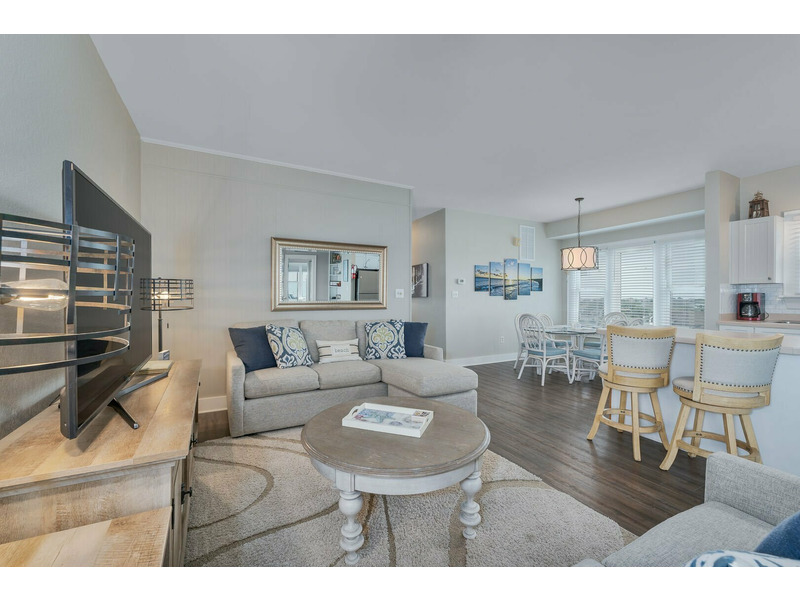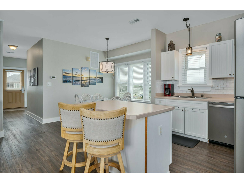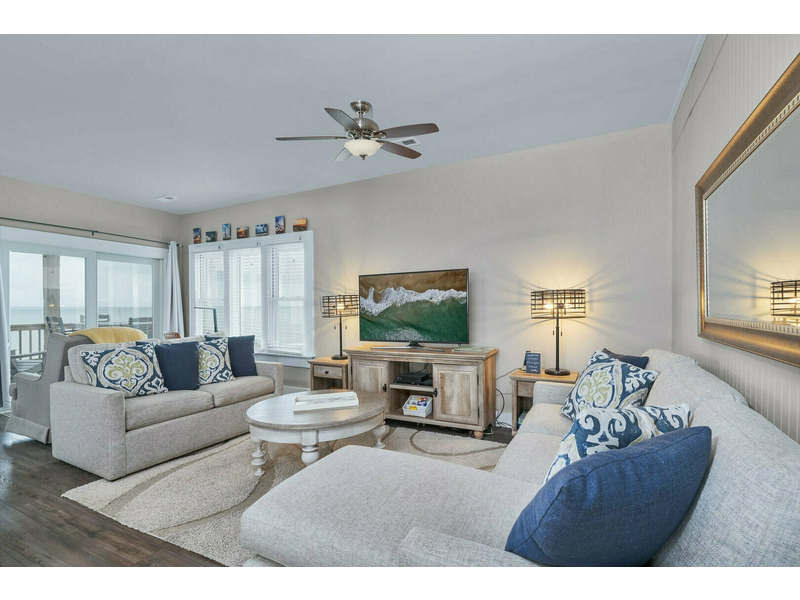 Inside Robyn's Nest, you'll be greeted by a bright and open living area with ample seating and beautiful ocean views. The kitchen features everything you need to prepare meals during your stay and with breakfast bar seating for 2 and dining room seating for 6, everyone can dine together. This main living area also gives you access to the furnished, oceanfront balcony. It's the perfect place to enjoy your morning cup of coffee, watch the sunrise, and take in the beauty of Avon. When it's time for bed, head to one of the 2 bedrooms for the ultimate rest and relaxation during your stay. With so many great amenities and stunning views, Robyn's Nest will be sure to provide you and your family the ultimate OBX getaway. Book your stay now!