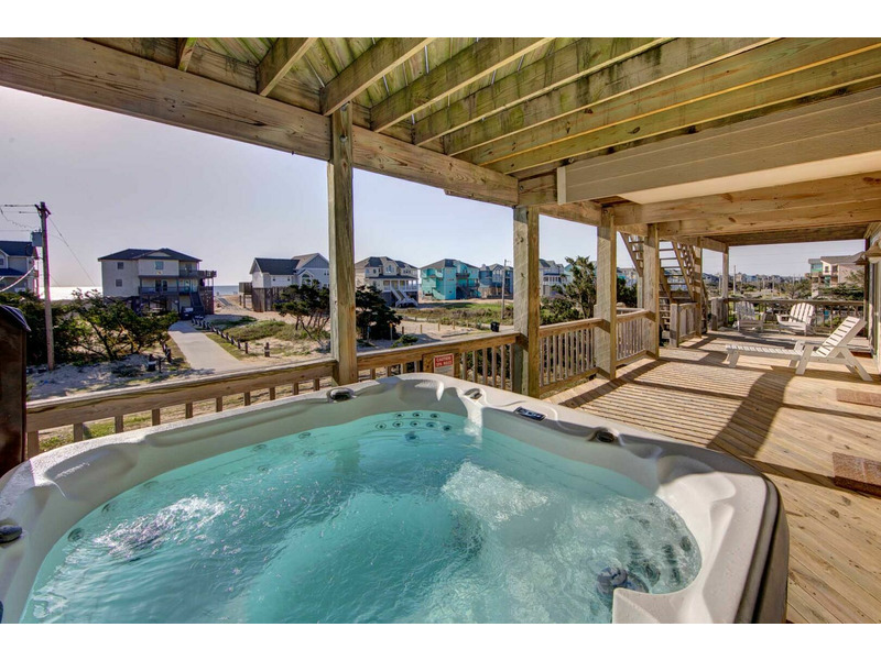 BEACH GEAR RENTAL INCLUDED! Always Included, complimentary linens and made beds! Located just steps away from the spacious beaches of Hatteras Island lies Drumstick! This 6-bedroom, 5.5-bathroom Avon rental home has plenty of room for everyone to soak up the sun and enjoy some Outer Banks fun. Centrally located in the heart of Avon, you'll be able to enjoy great local shopping, dining, and more nearby. You'll also get to enjoy a short drive to historical landmarks and attractions. Restaurants like Ketch 55 and Bros Sandwich Shack are nearby as well as the grocery store Food Lion for all of your grocery needs. A 10-minute drive south will bring you to the Cape Hatteras Lighthouse and even better? You're just about a 2-minute walk to the beach from your rental home! DrumStick is also part of The Greater Kinnakeet Shores Homeowners Association which provides unlimited use of the sound side Olympic-sized pool, kiddie pool, 2 tennis courts, community sound access, fitness trails, and 69 acres of freshwater lakes!Inside this pet-friendly home, you'll find an open living area complete with a large couch and plenty of seating for the whole family to gather together. The kitchen features everything you need to prepare meals during your stay, including spacious countertops, stainless steel appliances, and both Keurig and standard drip coffee makers, along with a family-sized crockpot, griddle, and Kitchen Aid Mixer, and plenty of new pots and pans and dishes. Choose to dine at the breakfast bar with seating for 7, dining room seating for 8, and additional seating for 4 at the bar area. Access to the furnished sun deck rounds out the communal spaces and fantastic views of the top level. Catch the sunrise over the ocean from the top deck East side and spectacular sunsets from the top deck West side. DrumStick also features a Sunset Room with a wet bar, countertop ice maker, and wine cooler. The perfect place to sit and enjoy the sunsets over Pamlico Sound. When it's time for bed, head to one of the cozy bedrooms for a good night's rest. Each of the primary bedrooms has easy bathroom and deck access for your convenience. The top-floor master bedroom includes a jetted tub and a large walk-in shower. Have an electric vehicle? Not a problem at DrumStick. You can charge your car for free using a NEMA 14-50 240-volt outlet. Just remember to pack your vehicle's EV charger. There is also plenty of parking and two carports for covered vehicle storage. Additional amenities at Drumstick include a quiet workspace for school or work. Two computer monitors are available for guest use, a private hot tub, and a rec room with a pool table, flat-screen TV, a Bluetooth Sound System, and plenty of board games and puzzles for those family game nights!