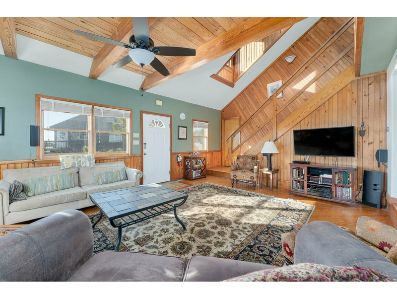 At Dragon's Lair, enjoy an open living area complete with plenty of seating and a flat-screen TV perfect for spending time together as a family. When it's time to prepare meals, the kitchen has everything you need including a gas range and plenty of counter space. With breakfast bar seating for 3 and dining room table seating for 4, everyone can enjoy meals together. You also have the option to soak in the summer salt air on the screened porch at the outdoor table for 3. Dragon's Lair lies on the canalfront in Avon so you'll be able to take in stunning OBX sunsets on the furnished sundeck. Each bedroom at Dragon's Lair is cozy and is the ultimate space to relax after a funfilled day enjoying the OBX.