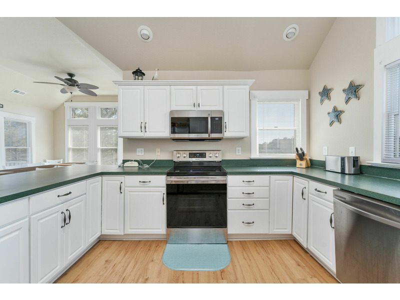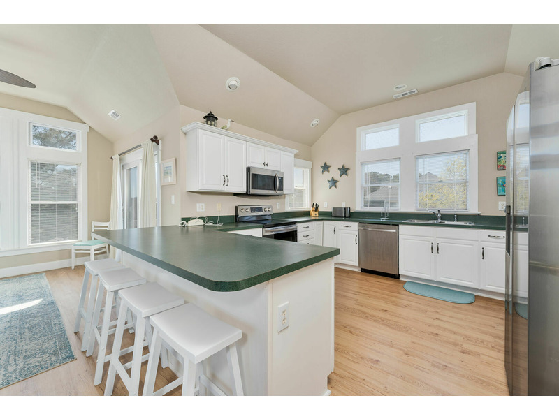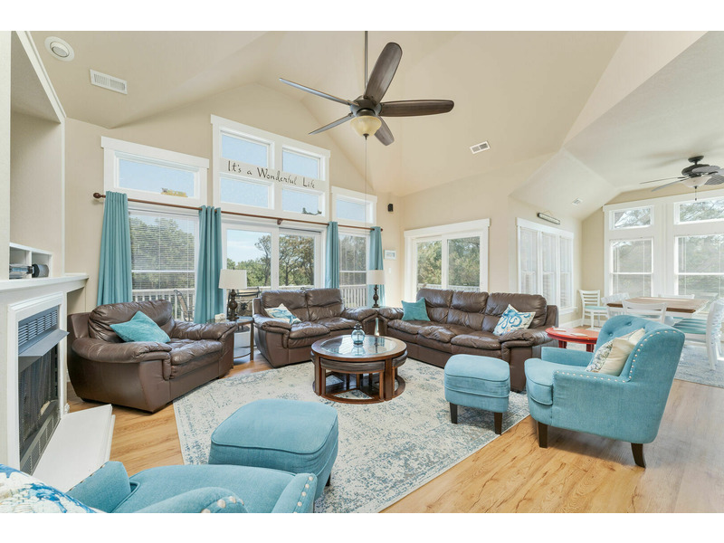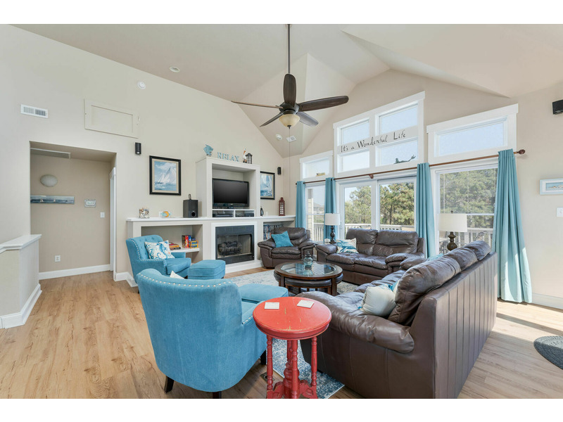 Inside It's A Wonderful Life, you'll also have access to a ground-level rec room; complete with a pool table, daybed, flat-screen TV, and wet bar. The perfect space to get out of the sun for a little while and have fun with family and friends. Upstairs, you'll be greeted by an open living area with ample seating, a flat-screen TV, and a fireplace for you and your crew to relax, unwind, and spend quality time together. Need to prepare meals during your stay? No problem. The kitchen at this OBX rental home is spacious and features stainless steel appliances that make cooking a breeze. The breakfast bar seats 4 and the dining room table seats an additional 10 so everyone can dine together. You'll also have the option to dine outside on the furnished sundeck while taking in the salty sea air. Each bedroom provides you and your crew with a comfortable place to rest up for the next day and the King Master suite even features a jetted tub for ultimate relaxation. Additional amenities at It's A Wonderful Life include an outdoor shower, ocean views, and a Keurig Coffee Maker.