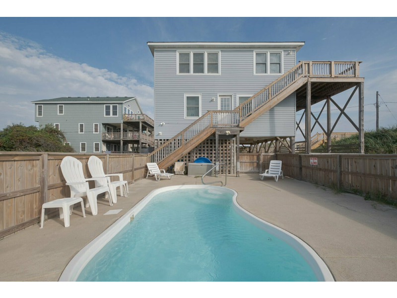 BEACH GEAR RENTAL INCLUDED! Always Included, complimentary linens and made beds! New for 2024: Pool heater. Located on the oceanfront lies Lega Sea! This charming OBX rental home offers the perfect blend of comfort and seaside bliss, boasting four spacious bedrooms and two bathrooms, making it an ideal retreat for families and groups seeking a memorable beachside experience. Lega Sea is situated right on the oceanfront, offering stunning panoramic views of the Atlantic Ocean. You can wake up to the soothing sound of the waves and enjoy direct access to the sandy shores just steps from your door making beach days a breeze. Plus, you can have fun in the sun right at home. Enjoy your own private pool and hot tub, just steps away from the beach. You'll be able to unwind, soak up the sun, and take in the beauty of the Outer Banks. Inside Lega Sea, you'll find a living area that features a flat-screen TV, plenty of seating, and front-row seats to beautiful ocean views. The living area also allows you access to the furnished sun deck; perfect for enjoying morning coffee while watching the sunrise over the ocean. When it's time to prepare meals during your stay, the kitchen has everything you need including plenty of counterspace. With breakfast bar seating for 3 and dining room seating for 8, there's plenty of space for family meals. Lega Sea provides the perfect backdrop for an unforgettable beach vacation with its oceanfront location, private pool, hot tub, and comfortable accommodations. Whether you're seeking relaxation or adventure, this rental property in Nags Head is sure to meet your every need and create lasting memories of your Outer Banks getaway.