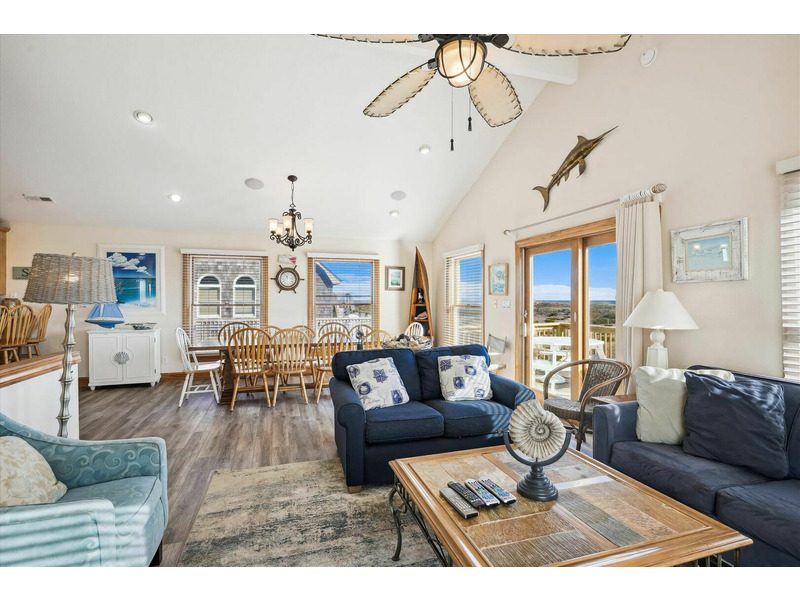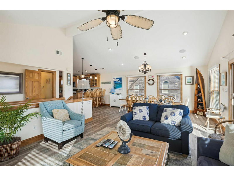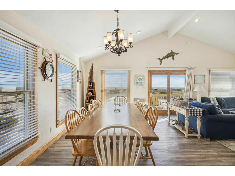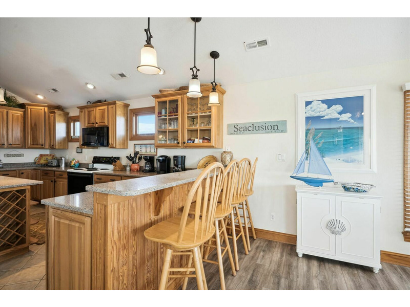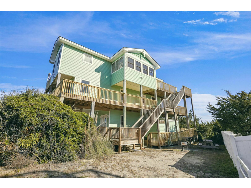 Direct Beach Access, Ocean Views, Sun Deck, Covered Deck, Hammock, Porch Swing, Charcoal Grill, Picnic Table, Fish Cleaning Table, Cargo Lift, Rec Room, Pool Table, 6 TVs, DVD Player, Surround Sound, WiFi Internet Access, DVD Library, Book Library, Kitchenette, Dishwasher, Microwave, Washer and Dryer, Keurig Coffee Maker, Crock Pot, Griddle, Booster Chair, Pack-n-Play.
