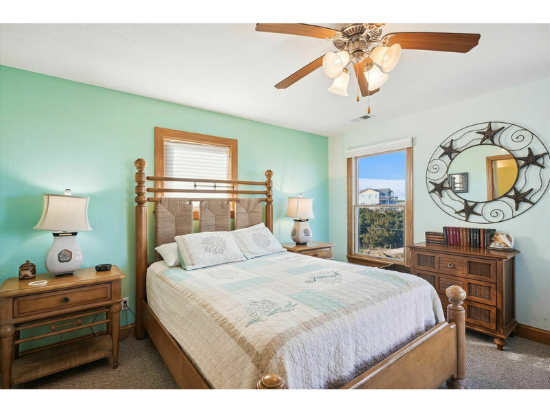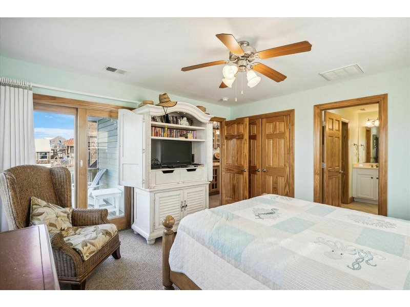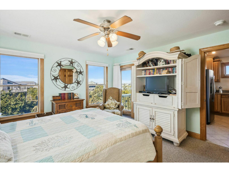 King Master Bedroom with Day Bed, Trundle, TV and Deck Access, Queen Master Bedroom with TV and Deck Access, Queen Bedroom with TV and Deck Access, Full Bathroom.