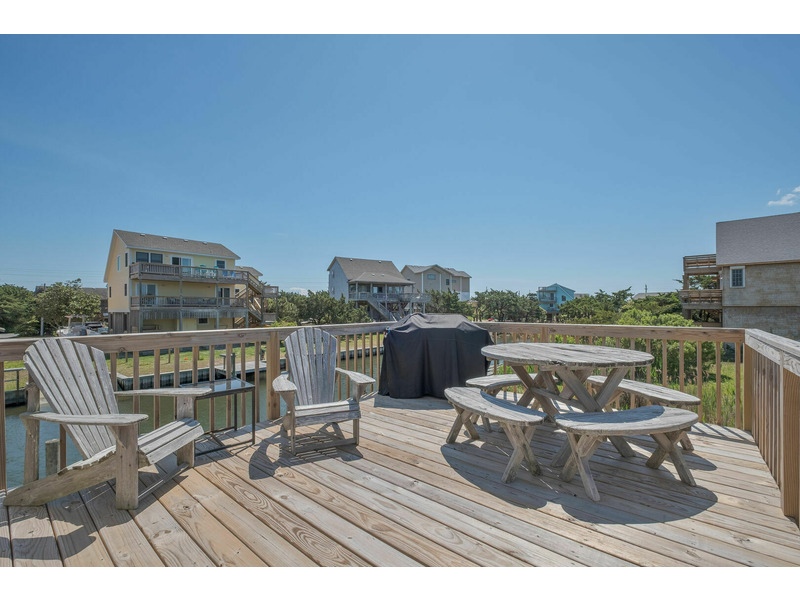 Sound Views, Screened Porch, Sun Deck, Covered Deck, Gas Grill, Picnic Table, Canal Dock, TV, WiFi Internet Access, Dishwasher, Microwave, Washer & Dryer.