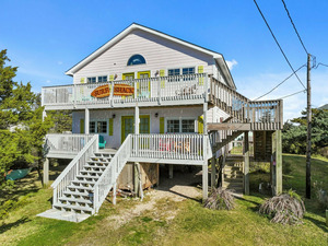 BEACH GEAR RENTAL INCLUDED! Always Included, complimentary linens and made beds! Welcome to Surf Shack, your vibrant and pet-friendly coastal oasis in the heart of Avon! This 4-bedroom, 3-bathroom rental home invites you to experience the ultimate beachside retreat with a playful and colorful ambiance. What's more, Surf Shack is pet-friendly, allowing your furry friends to join in the fun and make lasting memories by your side. The nearby beach provides the perfect playground for your pets to frolic in the sand and surf. As you enter, you'll be greeted by cheerful and beach-inspired decor that sets the tone for a laid-back and enjoyable vacation. The spacious living area creates a warm and inviting atmosphere for you and your family to relax and unwind on island time. With ample seating and a flatscreen TV, it's the perfect place to hang out and catch up with your crew. The open-concept layout seamlessly connects the living, dining, and kitchen areas, providing a perfect space for socializing with family and friends.The well-appointed kitchen is a chef's dream, equipped with modern appliances and everything you need to whip up delicious meals during your stay. The dining area is spacious and features seating for 6, creating a perfect setting for memorable family dinners. Step outside onto the furnished sun deck. It's an ideal spot for sipping morning coffee and taking in the salty air. The gas grill is also located on the sun deck for you to host a seaside cookout for your loved ones. Surf Shack offers 4 cozy bedrooms, each uniquely decorated to provide a distinct beach retreat experience. With comfortable furnishings and colorful accents, every room exudes charm and relaxation. With its unbeatable location, vibrant atmosphere, and thoughtful amenities, Surf Shack is the quintessential beachside getaway for those seeking a memorable and pet-friendly vacation in Avon. Book your stay and dive into the ultimate coastal experience!