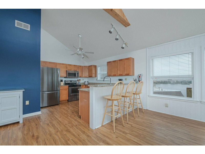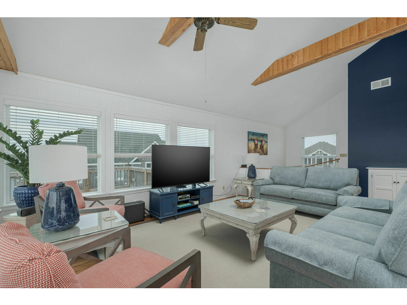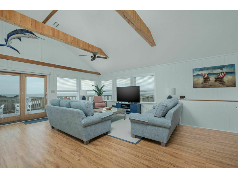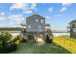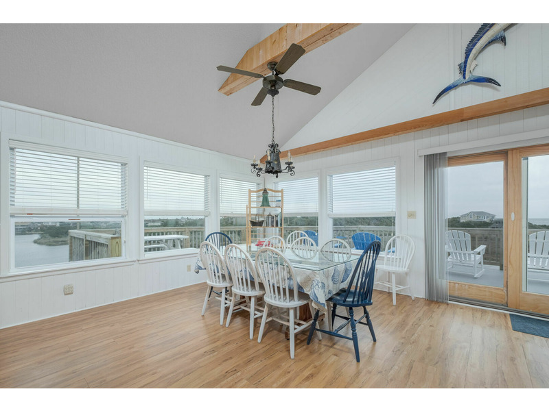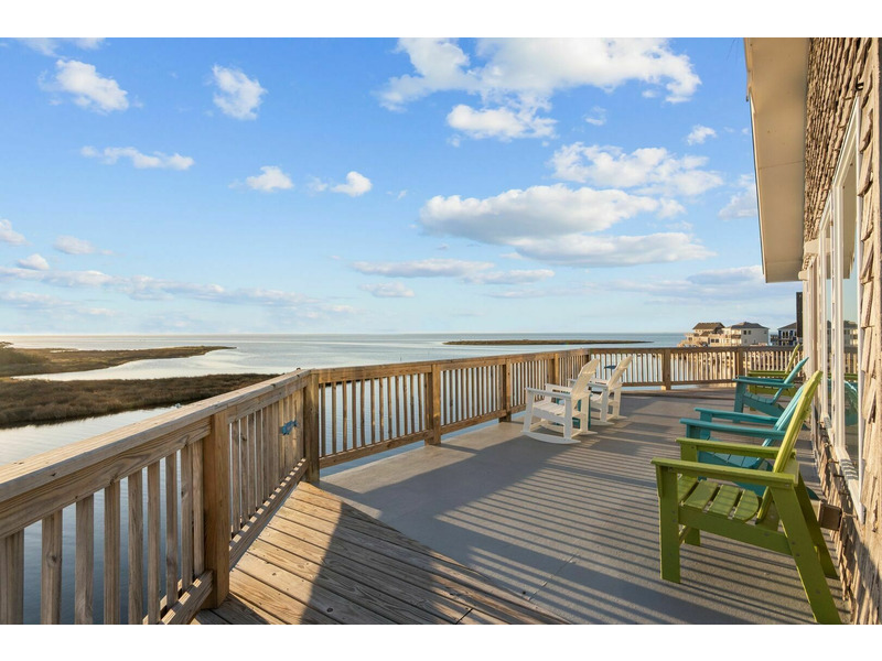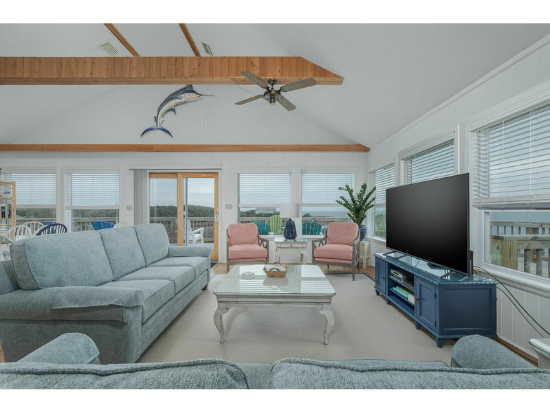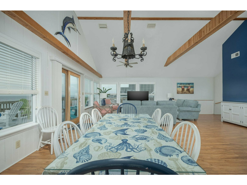 Inside Windfall, you'll be welcomed by an open living area complete with plenty of seating, a flat-screen TV, and beautiful sound views. It's the perfect space to relax with family and friends. The kitchen is fully equipped with everything you need to prepare meals during your stay including stainless steel appliances and plenty of counter space. The dining room table features seating for 10 and there's additional breakfast bar seating for 3. The four bedrooms provide ample space for guests to unwind after a day of exploring the Outer Banks. Whether you're relaxing on the deck, enjoying a meal al fresco, or taking advantage of many amenities at this Hatteras rental, Windfall promises a delightful Outer Banks experience.