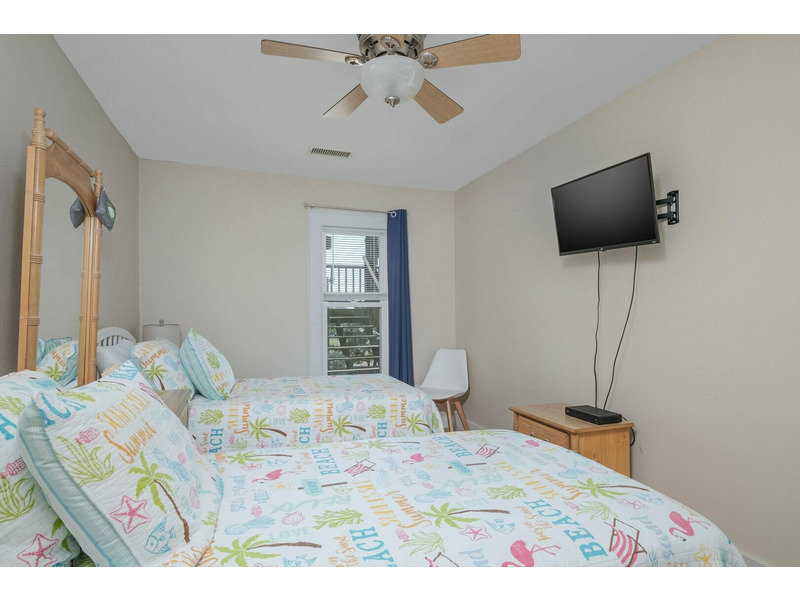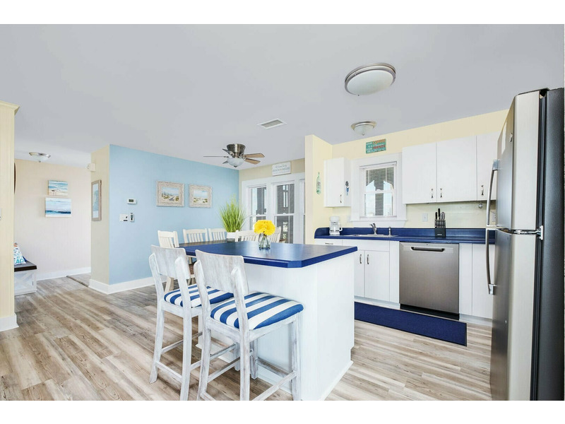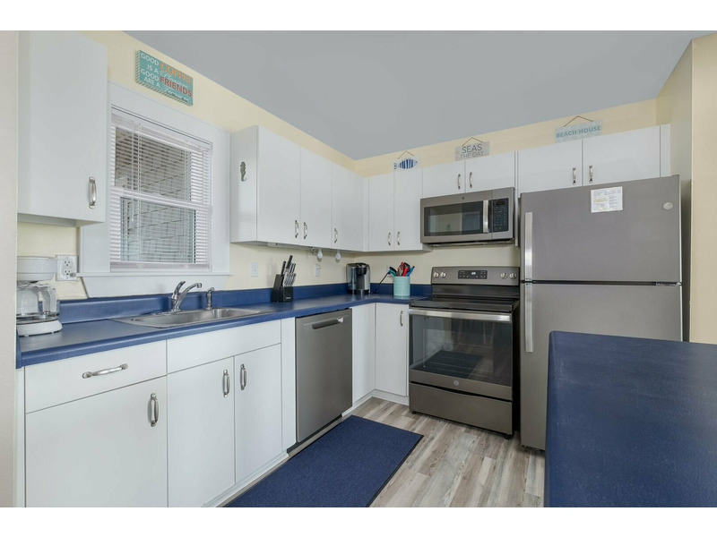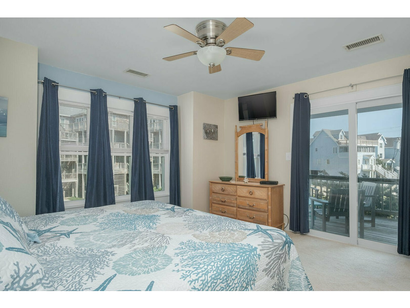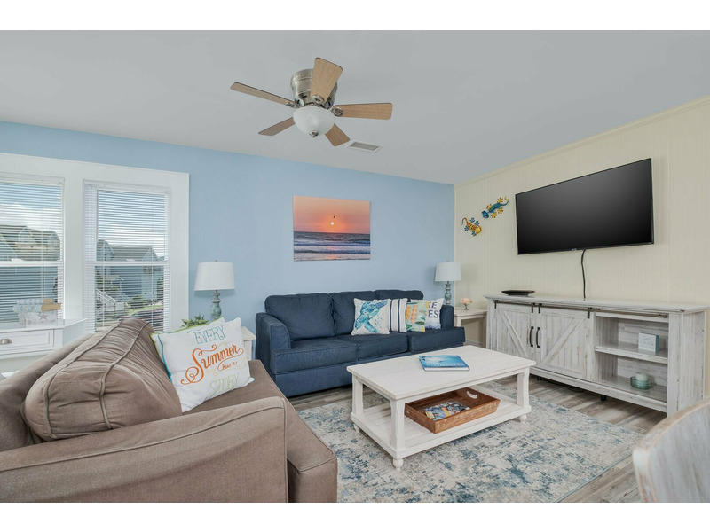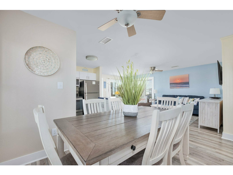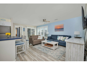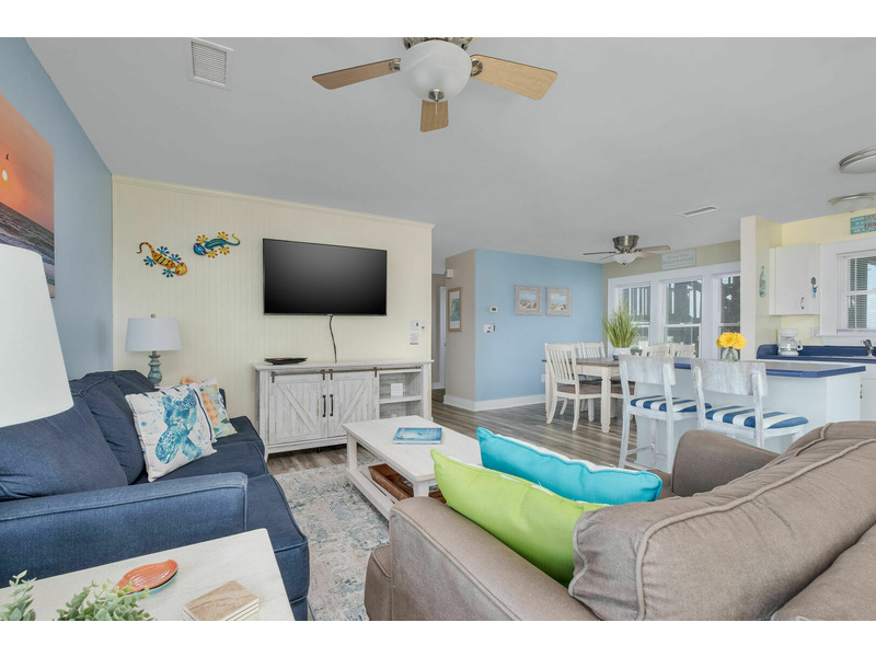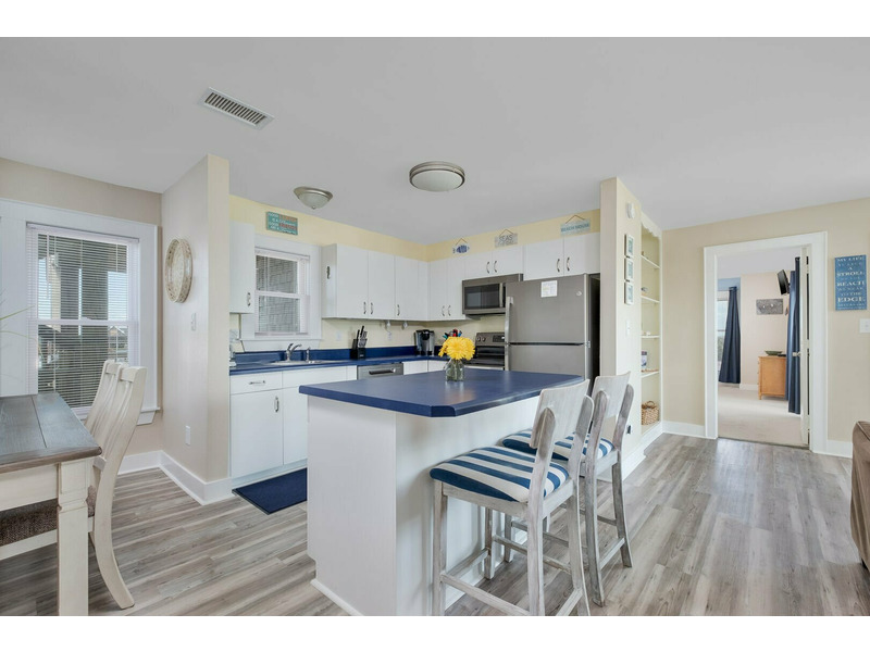 As you step into Sea La Vie, you'll be greeted by an open living area. With comfy seating and a flat-screen TV, it's the perfect place to relax, unwind, and catch up with friends and family. The well-equipped kitchen features everything you'll need to prepare delicious meals for your family or friends. Spacious countertops, stainless steel appliances, and more allow you to easily whip up something tasty. There's breakfast bar seating for 2 and the adjacent dining area provides seating for up to 6 people, making it a perfect spot to enjoy your home-cooked creations. At Sea La Vie, you'll also be able to enjoy the private deck, where you can unwind, sip your morning coffee, or share a meal with loved ones while taking in the sound of the crashing waves nearby. It's the ideal place to soak in the sea breeze and relish the tranquility of the Outer Banks. Sea La Vie has two cozy bedrooms ensuring privacy and convenience for all guests. With all of these amenities and the prime location of this Outer Banks condo rental, Sea La Vie promises a memorable and relaxing getaway for you and your family.