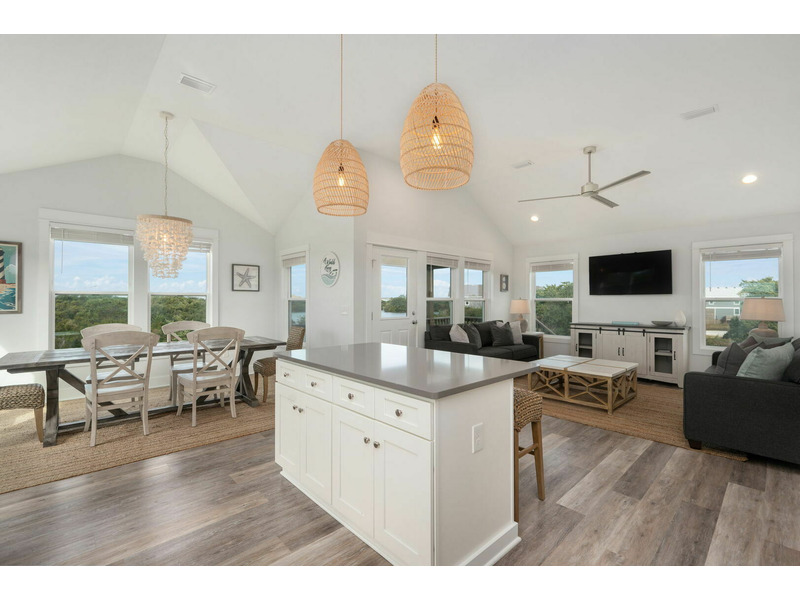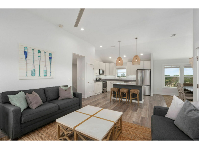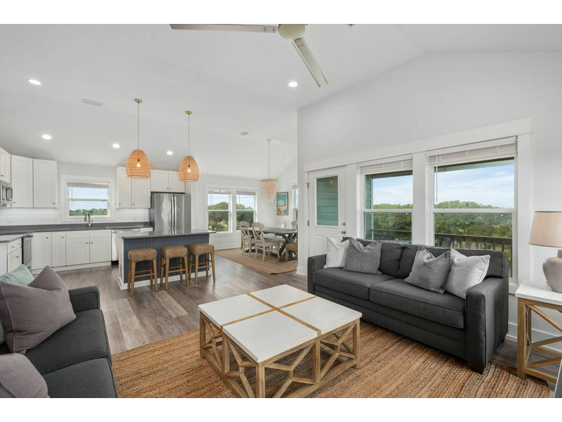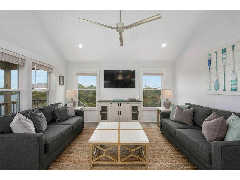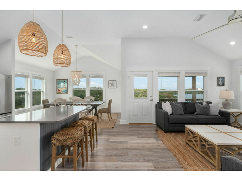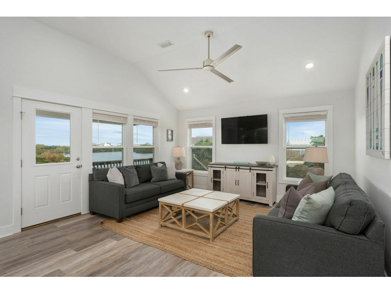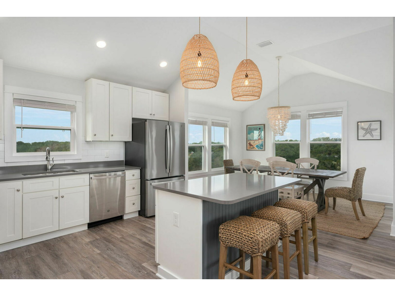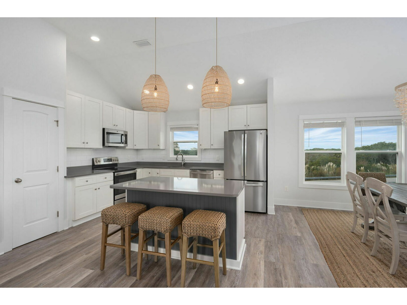 Outside on the porch and back deck, you can take in beautiful views of the serene island trees hugging the water's edge. You'll be within a walkable distance from the grocery store and other local Hatteras Island shops in the plaza. When you need a break from the beach, enjoy access to the seasonal shared pool and tennis court. A World Away is located in Kinnakeet Shores, a beautiful and scenic neighborhood filled with multiple lakes and many amenities. This lakefront home is perfectly situated close to many gorgeous access points to the beach and sound. Come enjoy all of the comforts of this Hatteras Island vacation rental; well-equipped with everything you will need for a wonderful stay on the Outer Banks. The water views are absolutely stunning from every window! A World Away would love to have you!