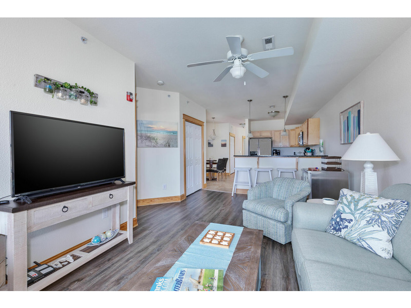 Community Elevator, Community Pool, Covered Deck, Sound Views, Combo Kuerig and Drip Coffee Maker, Crock Pot, Book Library, Dishwasher, Microwave, 3 Roku TVs, Soundbars for all TVs WiFi Internet Access, Washer & Dryer, Community Grill, Outside Restrooms, and Outside Showers with Dressing Areas by Pool. No Parking of any trailer allowed onsite.