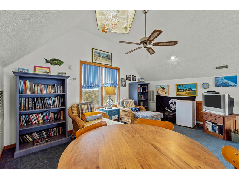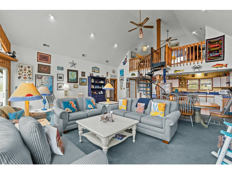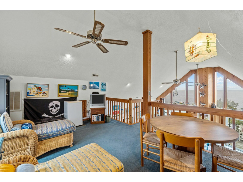 At Swing Belly's Roost, you can enjoy some of the most stunning Outer Banks sunsets imaginable. Hang out on the furnished sundeck that overlooks the Pamlico Sound and take in the warm, OBX breeze. It's the perfect place to sit with family and friends to watch the sunset or have a moment of solitude while taking in the serenity of Hatteras Island and enjoying your morning cup of coffee. At this Outer Banks rental, enjoy a private hot tub that overlooks the sound, allowing you to relax and unwind. Inside, sit a spell in the living area with ample seating and a TV. Head up the spiral staircase to take advantage of an additional sitting area with a TV, mini fridge, and a book library. Want to prepare home-cooked meals during your stay? The kitchen has everything you need to prepare tasty meals including spacious countertops, a dishwasher, and more. Dine at the kitchen island with seating for 3 or the dining room table with seating for 6 so everyone can enjoy meals together as a family. When it's time for some shut-eye, head to one of the 4 bedrooms for a restful night's sleep. Additional amenities at this Outer Banks rental include a charcoal grill, outdoor picnic table, and fish cleaning station.