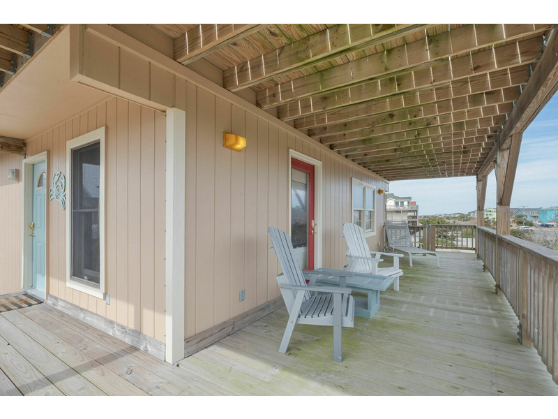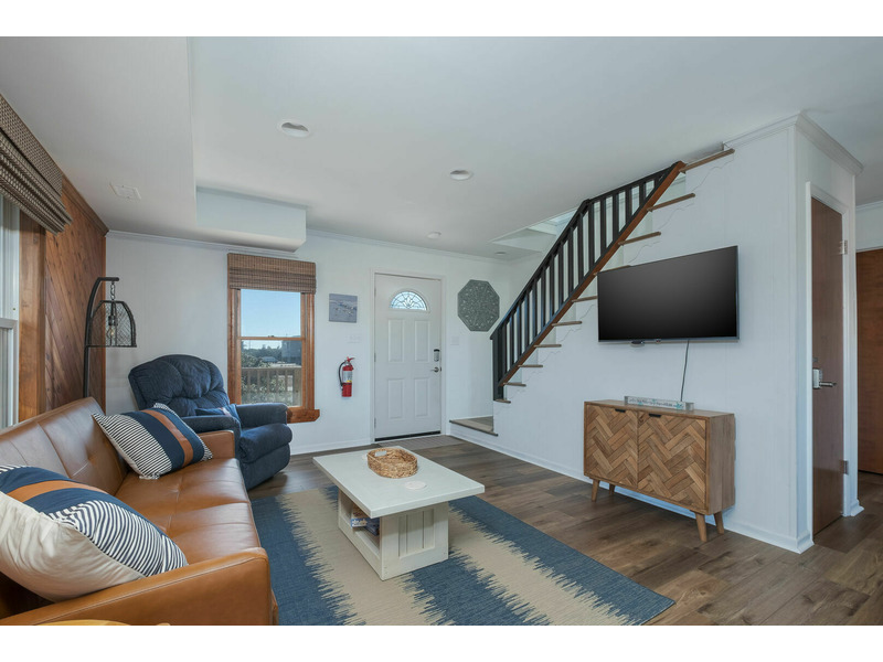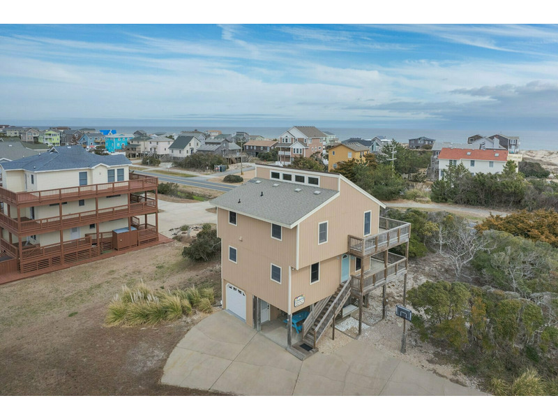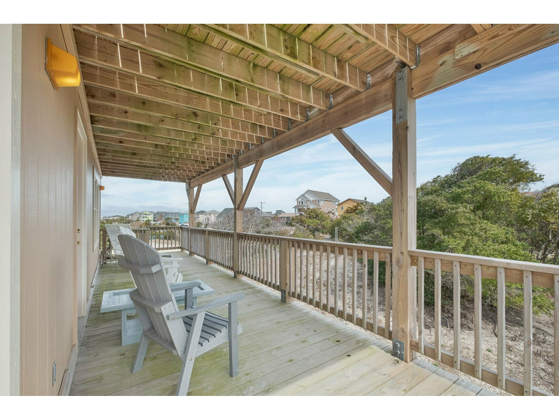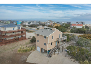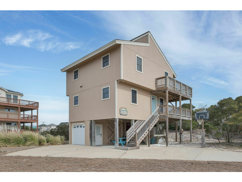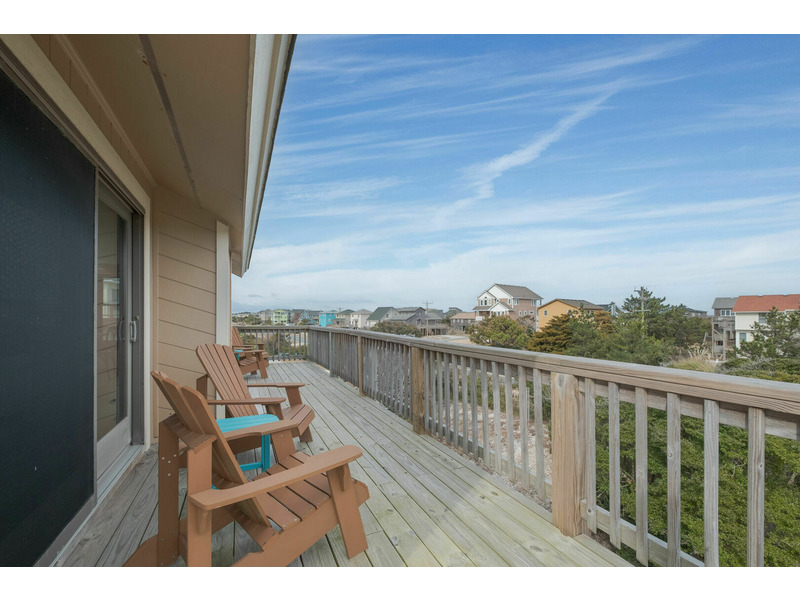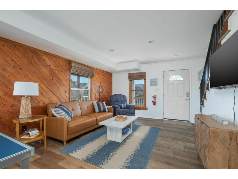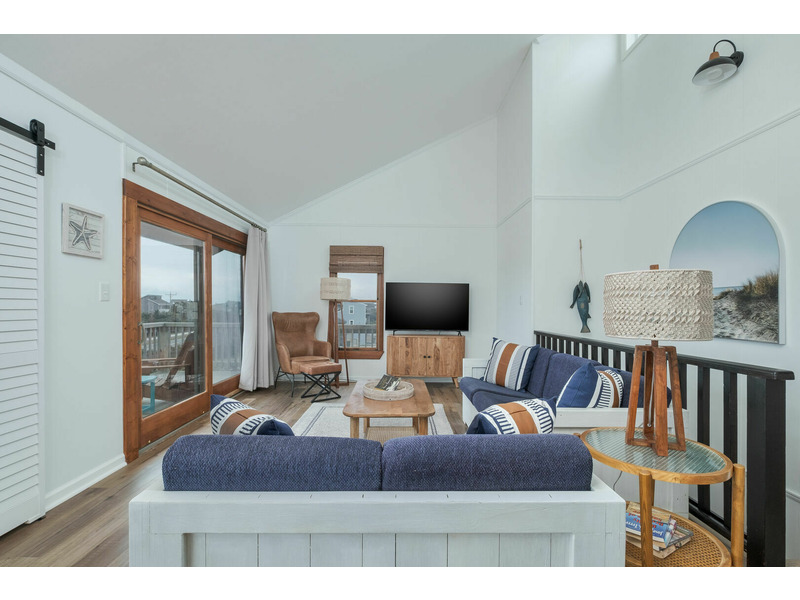 Upstairs at this Outer Banks rental, you'll be welcomed by an open living area complete with comfy seating and a flat-screen TV. It's the perfect place to gather with friends and family to unwind and relax. The upstairs level is also home to the kitchen where you can easily prepare meals during your stay. Spacious countertops and stainless steel appliances will be sure to delight the chef in your crew. With breakfast bar seating for 3 and dining room table for 8, there's plenty of room for everyone to sit and gather around a homecooked meal. When it's time for bed, you can head to one of the 3 beach-inspired bedrooms for some much-deserved rest. A Sailors View also features an additional seating area complete with a flat-screen TV and wet bar with a card table. Grab one of the board or card games from the shelf and engage in some friendly competition with your friends and family! A Sailors View truly has everything you need for a memorable OBX vacation.