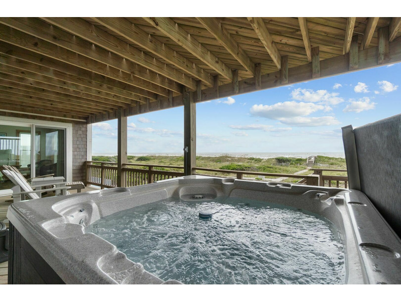 Inside Peridot, you'll be greeted by an open, cozy living area. Designed for comfort, it's the ideal space to unwind after a day at the beach or exploring the best of Hatteras Island. The fully equipped kitchen boasts stainless steel appliances, making meal preparation a breeze, and the dining area is perfect for enjoying meals together. Step outside to discover furnished sun decks that offer breathtaking ocean views, ideal for enjoying your morning coffee while the sun rises or savoring a sunset cocktail. Need some at-home fun? The rec room features a pool table, perfect for some friendly competition. Peridot also features a private hot tub that overlooks the ocean, allowing you to relax all while taking in the sights and sounds of the Atlantic Ocean. Bedtime at the Outer Banks rental brings the ultimate relaxation. With 5 bedrooms, there's space for everyone to catch some much-deserved shut-eye during your stay. Don't miss out on this incredible oceanfront home—book your stay today and create unforgettable memories!