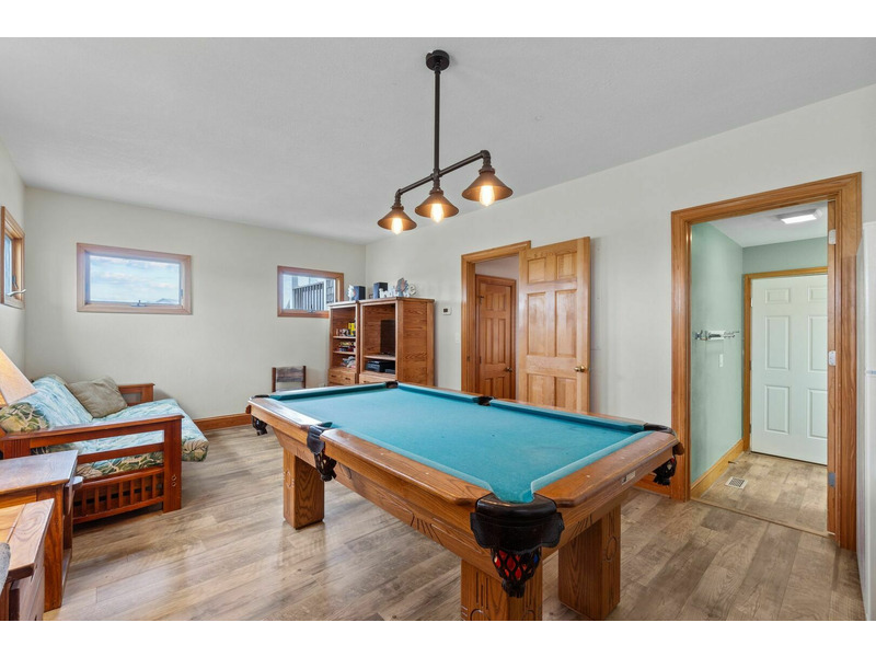 Rec Room with Pool Table, Refrigerator, and TV, Full Bathroom.