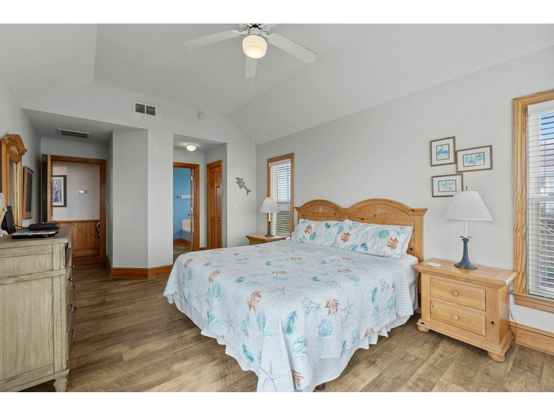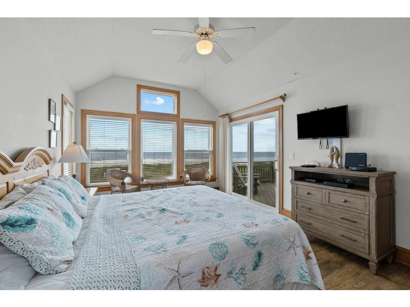 King Master Bedroom with TV and Deck Access, 2 Queen Bedrooms each with TV and Deck Access, Bedroom with 2 Twins and TV, Full Bathroom.