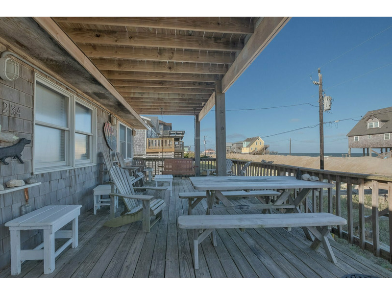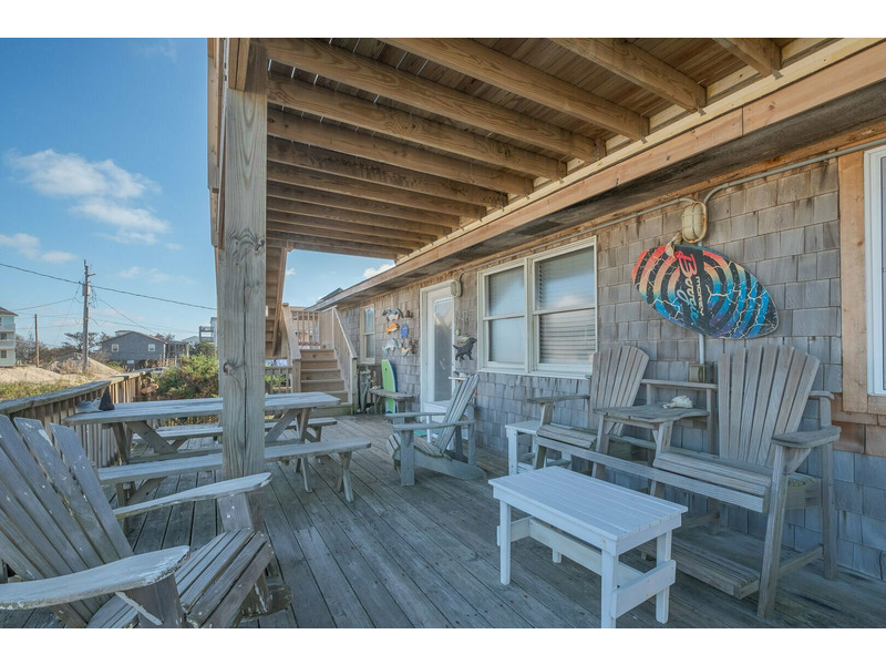 BEACH GEAR RENTAL INCLUDED! Always Included, complimentary linens and made beds! Welcome to Duck Dog, a semi-oceanfront OBX rental located in the heart of Rodanthe. This delightful 4-bedroom, 2-bathroom Outer Banks rental offers a serene and comfortable retreat for up to 8 guests, making it perfect for families or groups of friends seeking a beachside escape. The stunning ocean views from the deck are sure to captivate you from the moment you arrive. Located less than 200 yards from the beach, Duck Dog provides easy access to the pristine sands and sparkling waters of the Atlantic Ocean. Nearby attractions include the Rodanthe Pier, where you can enjoy fishing and stunning sunsets, and the Chicamacomico Life-Saving Station Historic Site, offering a glimpse into the area's rich maritime history. Duck Dog even provides a complimentary weekly pass for 6 people to Rodanthe Pier, just let the folks know you are staying at Duck Dog cottage. Even better? Duck Dog is a pet-friendly Outer Banks rental, allowing the entire family to enjoy all that Hatteras Island has to offer. As you enter Duck Dog, you'll be welcomed by an open living area, perfect for relaxation. With a flat-screen TV and ample seating for your entertainment and comfort, it's the ideal space to gather with friends and family during your stay. The fully equipped kitchen boasts all the essentials, including a refrigerator, coffee maker, microwave, dishwasher, stove, toaster, and cooking basics, allowing you to easily prepare delicious meals. Choose to dine at the dining table or on the covered porch while taking in the beautiful ocean views. When it's time for bed, each bedroom waits for you to relax, unwind, and enjoy a restful night's sleep. Additional amenities at Duck Dog include a rooftop deck offering you unparalleled ocean views, a hammock, a porch swing, and so much more. Book your stay at Duck Dog today and experience the ultimate oceanfront getaway in Rodanthe. This charming home is the perfect place to create lasting memories with your loved ones.