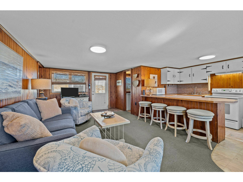 Inside, you'll be greeted by beachy decor in a cozy living area. Complete with plenty of seating and a flat-screen TV, it's the perfect gathering place. When you're ready to prepare meals, the quaint kitchen has everything you need including plenty of counter space and a glass-top stove. With dining room table seating for 6 and additional breakfast bar seating for 4, everyone can enjoy meals together during your stay. Each bedroom is cozy and perfect for getting a restful night's sleep during your stay. Whether you're looking to relax on the beach or explore the area, this Outer Banks rental offers everything you need for a fantastic vacation.