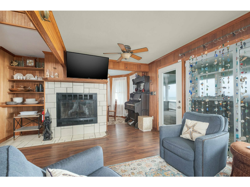 Hot tub, Direct Beach Access, Screened Porch, Sun Deck, Covered Deck, Porch Swing, Charcoal Grill, Outside Shower, Foosball Table, 5 TVs, Dishwasher, Microwave, Washer and Dryer, Keurig Coffee Maker, Crock Pot, Wood Fireplace, Wet Bar, Kitchenette.