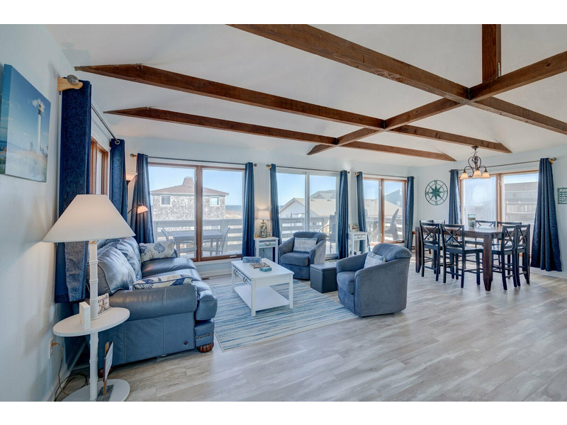 Always Included, complimentary linens and made beds! Your next Outer Banks vacation begins at About Time! Located in South Nags Head, About Time is a semi-oceanfront vacation home close to great OBX attractions. Nearby this Outer Banks rental, you'll find Fish Heads Bar and Grill, Jennette's Pier, and countless other local treasures. Shopping enthusiasts will appreciate being just minutes from the outlet mall in Nags Head, while history buffs can explore nearby landmarks, such as the Bodie Island Lighthouse. At About Time, you'll have direct access to the lifeguarded beach via the shared beach access. Even better? This 4-bedroom Outer Banks rental comes equipped with everything you need for the perfect getaway, including beach chairs and toys for your family's enjoyment.About Time features an open-concept living and dining area. You'll be able to take in stunning ocean views, while the furnished sun deck provides the perfect setting for watching spectacular Atlantic sunrises with your morning coffee. After a day of exploring the OBX, return home to plenty of space for everyone to unwind and watch the surf. Whether you're planning to spend your days soaking up the sun on the beautiful Outer Banks beaches, exploring local attractions, or sampling the area's local seafood restaurants, About Time provides the perfect home base for your Outer Banks getaway. Book your stay now and discover why this special corner of the OBX keeps families returning year after year!