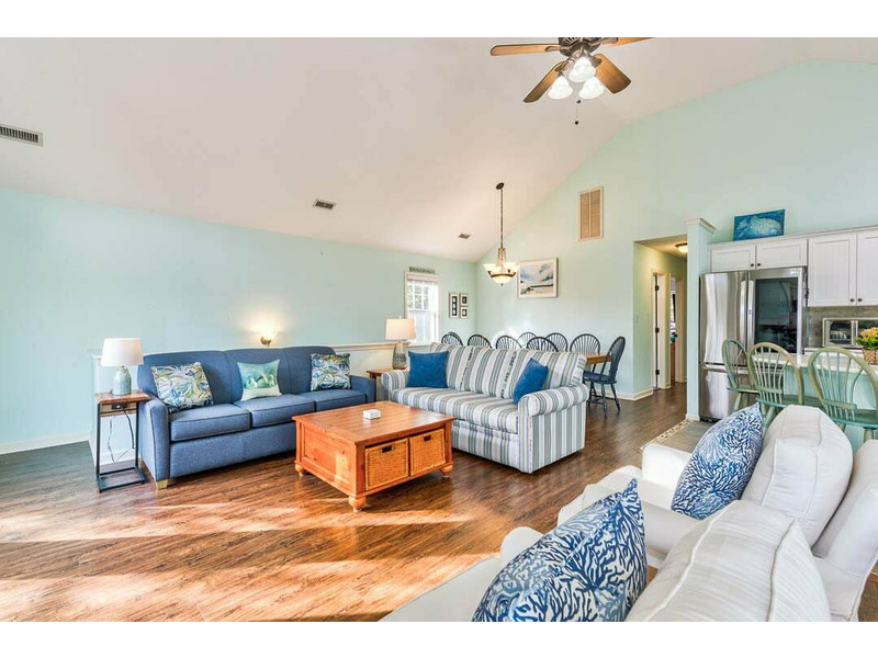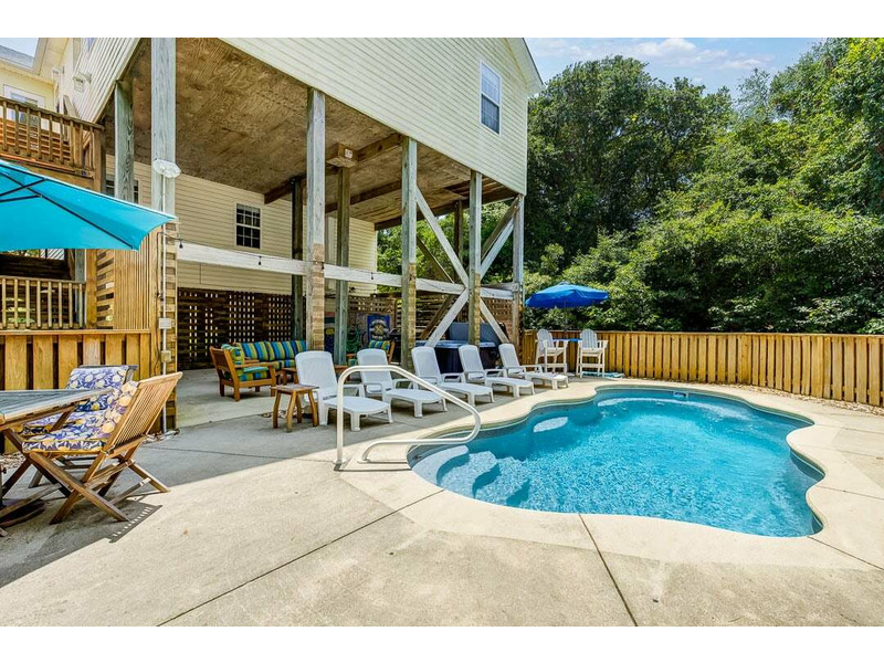 Beach Rabbit's outdoor amenities will have you 'hopping' for joy. Enjoy a dip in the private pool or unwind in the hot tub, all under the native seclusion provided by live oak and pine trees. Gather your beach gear and take a four-minute stroll along the neighborhood path to the private community beach access at Ocean Blvd. or Dogwood Trail, or stay and relax on the decks for a summer tan. Whatever you choose, you'll enjoy the easygoing, small-town charm of Southern Shores.