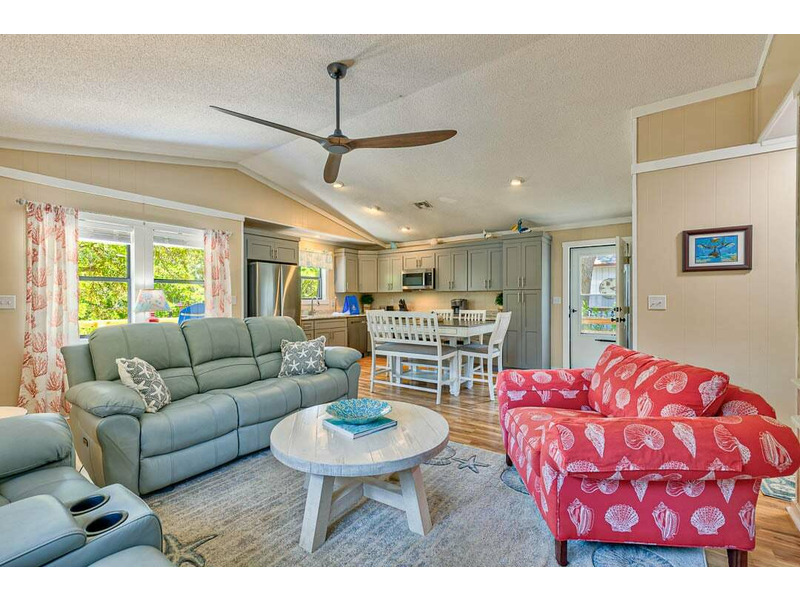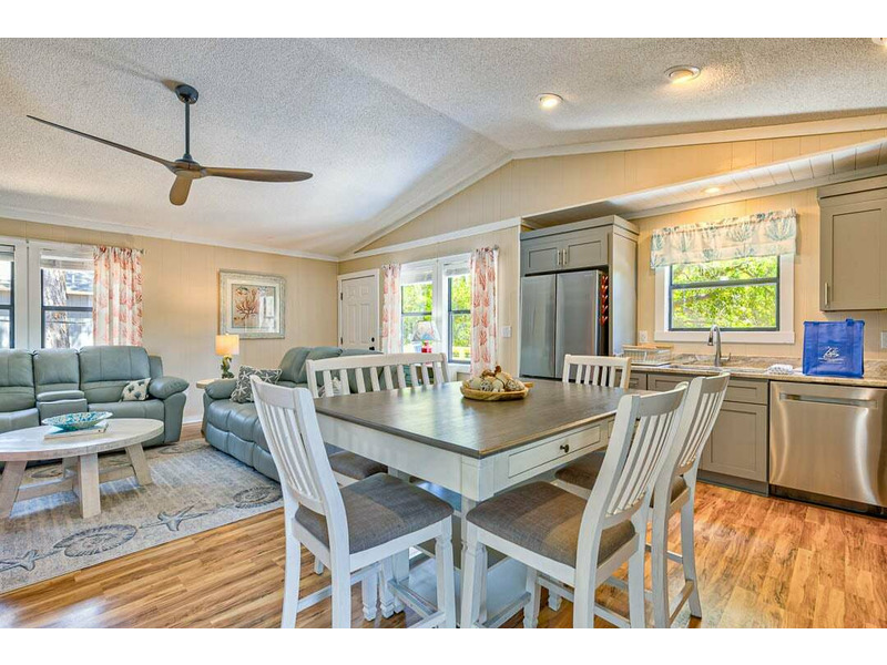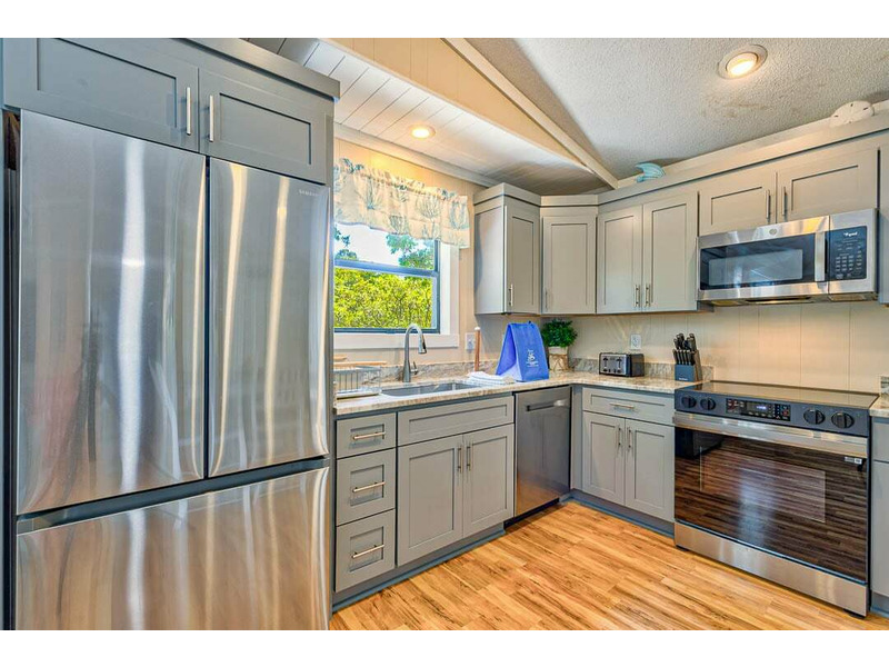 When you're not out exploring, you'll love the fresh, open, and easy-to-enjoy layout of Sea Swept Away. The main living area brings the kitchen, dining, and lounge space together—perfect for cooking, relaxing, or catching a movie after the beach. New stainless steel appliances make meal prep a breeze, and large wall-mounted smart TVs in every room keep everyone entertained on rainy days.
