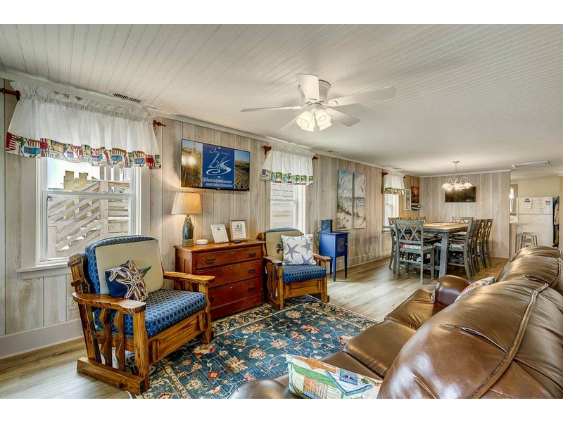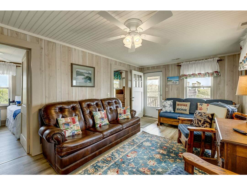Inside, this cozy cottage keeps things simple and comfortable—perfect for easy mornings and quiet evenings. Large windows in the main living area offer beautiful ocean views, while the quaint homestyle charm invites everyone to gather for meals, board games, or a lazy afternoon nap. This unpretentious vacation rental is ideal for couples, small families, or anyone looking to unplug by the sea.