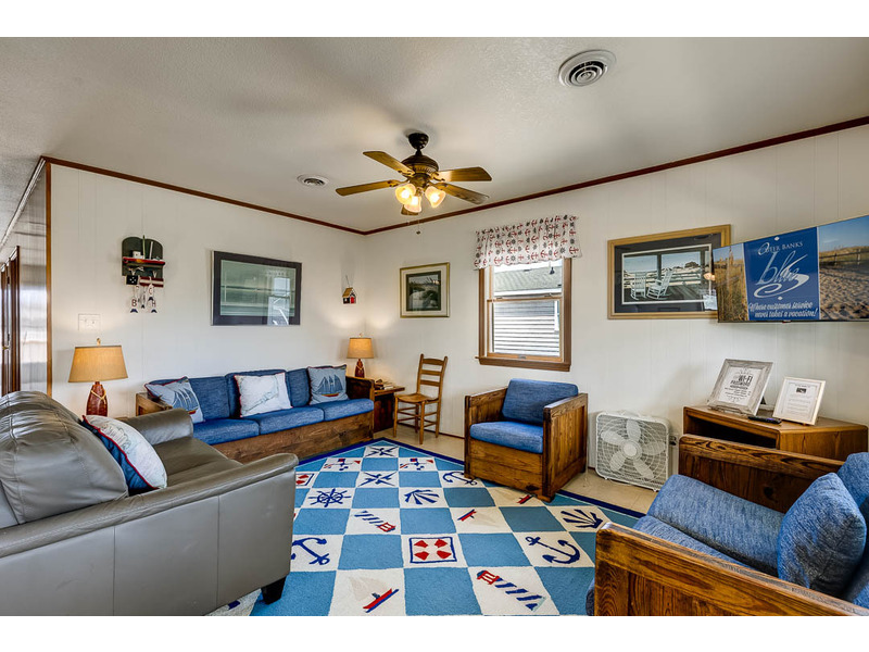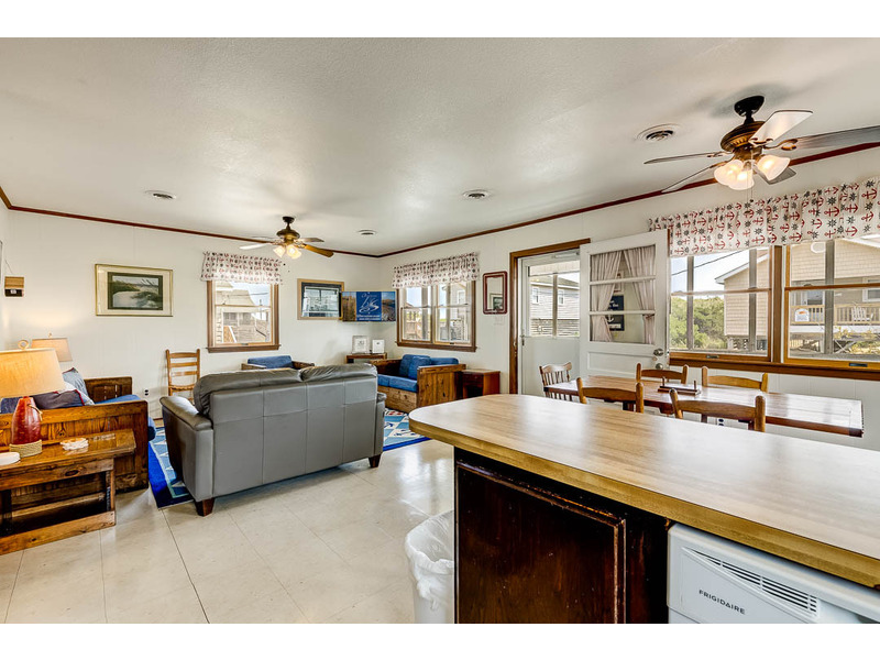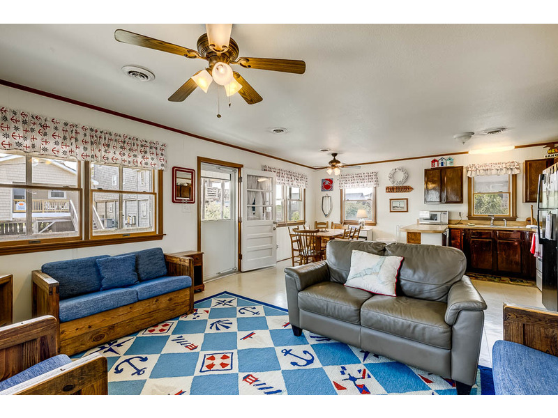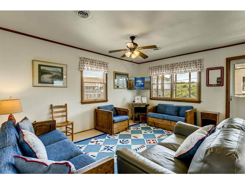 Climb the stairs and enjoy lounging at either end of the property, with a covered porch on the east side and an open deck for sunset views to the west. Inside, the cottage is warm and welcoming, with coastal décor and comfortable furnishings that make it easy to settle in. The traditional 3-bedroom, 2-bath layout (with a master suite) makes this home ideal for small families who want to enjoy the OBX in the relaxed, familiar style it's long been known for.