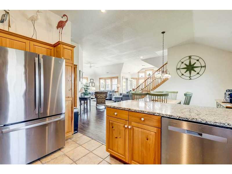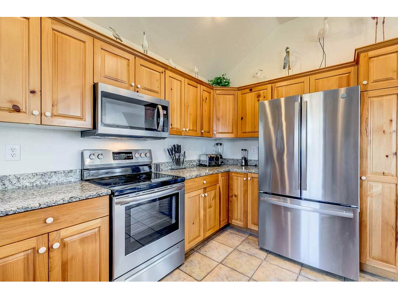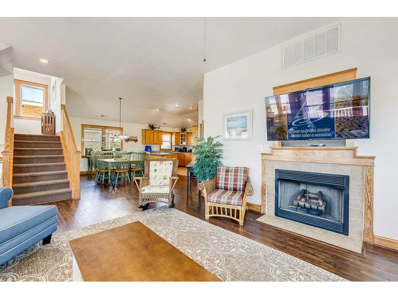 Top-Level: Living Room with Smart TV, Fireplace (Gas), Additional Table (seats 4), and Deck Access; Dining Room with Table (seats 8), and Deck Access; Kitchen with Bar (seats 4), Blender, Coffee Maker (Drip & Keurig), Dishwasher, Microwave, Oven/Stove, Refrigerator, Toaster, Pots, Pans, Dishes, and Cooking Essentials; Loft; King Master Bedroom with Smart TV, and Attached Full Bathroom with Soaker Tub; Hall Half Bathroom.
