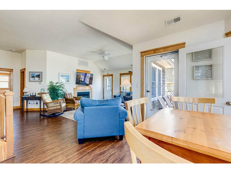 Inside, warm wood accents and cozy décor create a laid-back, beachy vibe. The top-level features an open living space with ocean views from the dining area, decks, and loft, plus a fully equipped kitchen perfect for family meals. Five of the six bedrooms have direct bathroom access, and with two wraparound decks, there's plenty of room to greet the morning sun or sneak away with a book. Guests staying in mid-level bedroom with two twins will enjoy an additional private deck! The ground-level rec room adds a second hangout space, complete with a pool table for friendly competition.