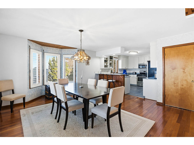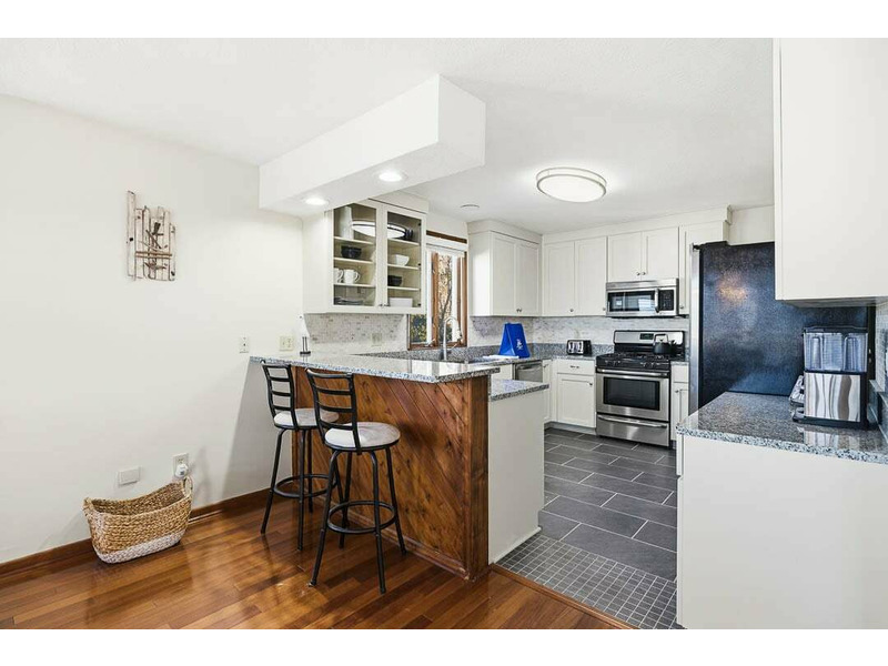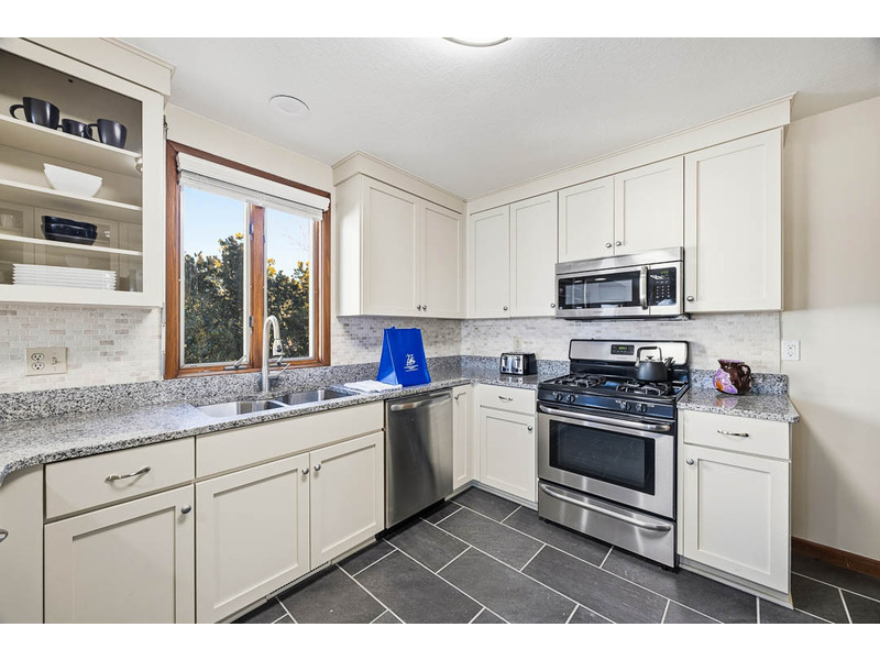 Mid-Level: Living Room with TV and Deck Access; Dining Room with Table (seats 8); Kitchen with Bar (seats 2), Blender, Coffee Maker (Drip & Keurig), Dishwasher, Microwave, Oven/Stove, Refrigerator, Toaster, Pots, Pans, Dishes, and Cooking Essentials; Queen Bedroom; Bedroom with 2 Twin Beds; Hall Full Bathroom.