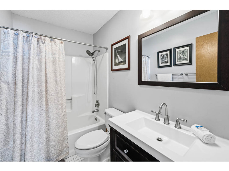 Inside, Jack's Hideout offers a relaxed and practical design with space for the whole family. The main/mid-level features a welcoming living room with TV and deck access, a dining table that seats eight, and a fully equipped kitchen with both drip and Keurig coffee makers. A queen bedroom and a twin bedroom share the hall bath on this level. Upstairs, a cozy den provides extra room to spread out, along with a queen master bedroom featuring its own private bath and deck access. A laundry room is also located on the top floor for convenience.