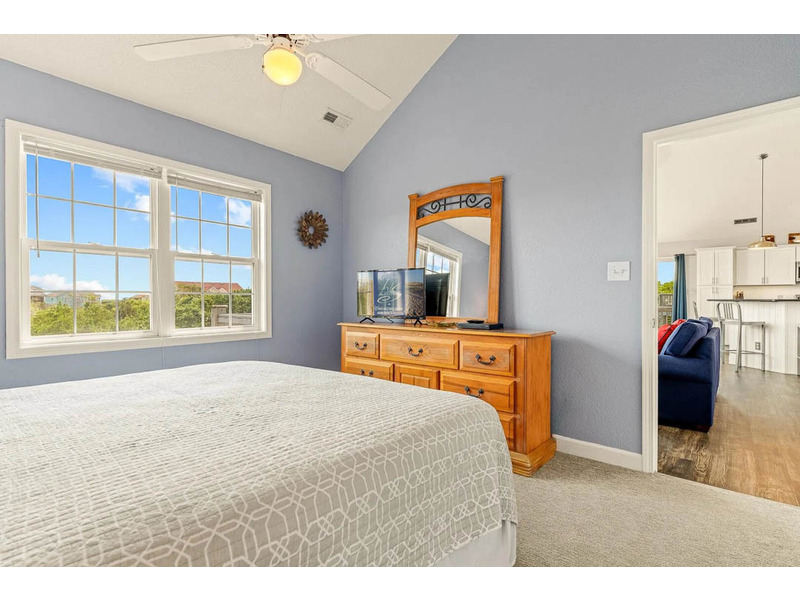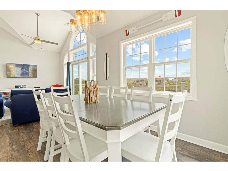Enjoy just Fiddlin' Around in Corolla at this beautiful, renovated, six-bedroom home in the sought after Whalehead Beach community—known for its spacious beaches which are a five-minute walk away! This location is all about convenience: the Timbuck II and Monterey Plaza Shopping Centers, also known as Corolla's town center, are only a mile and half away. Here you'll find a Food Lion for grocery needs, along with the area's best local shops and restaurants. La Dolce Vita is a favorite for fans of Italian cuisine! This central location also places Historic Corolla Park and golf at the Currituck Club within two and half miles (to the north and south, respectively).