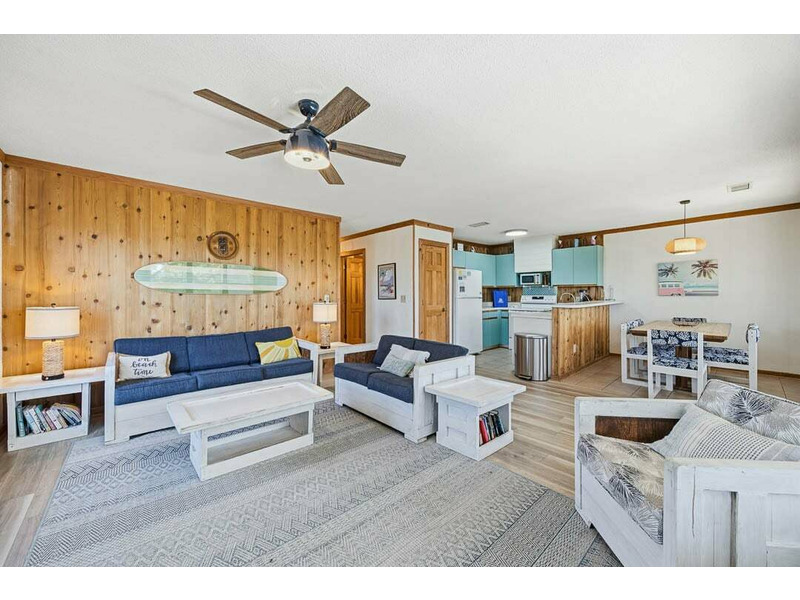 Two queen bedrooms and a bunk bedroom means there's enough space for Mom and Dad, the older kids, and the younger kids to get space to themselves. Two hall full bathrooms will cut down on lines to get ready in the morning, and an outdoor shower is available to keep sand outside where it belongs.