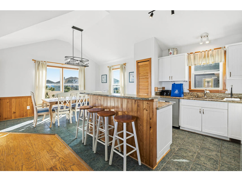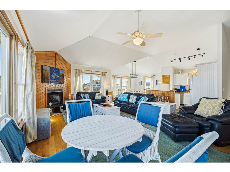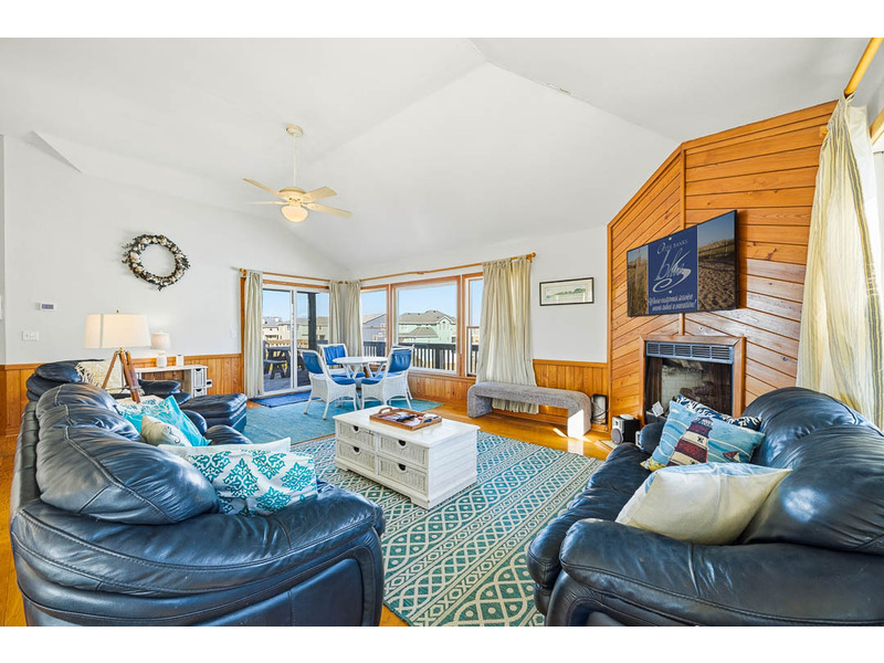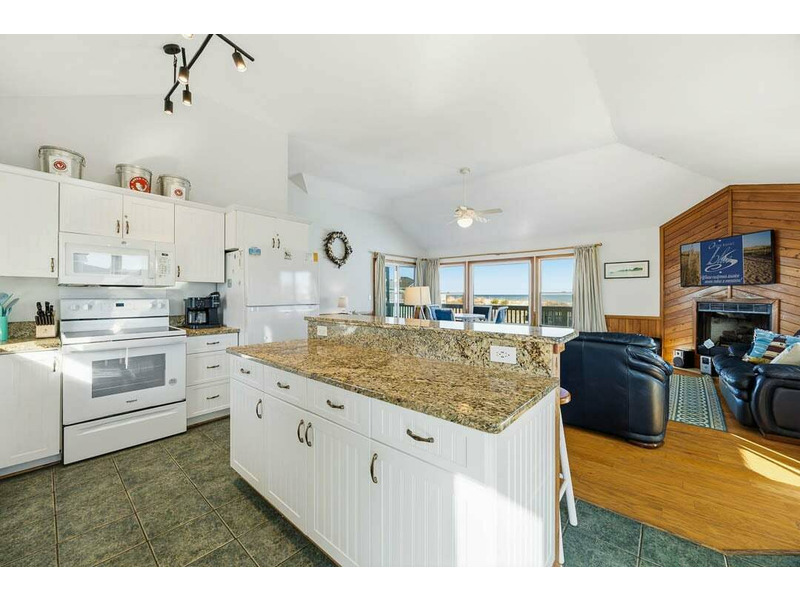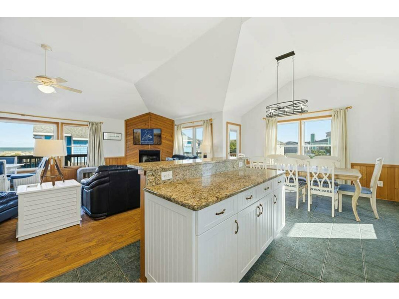 Enjoy the living area on the top-level, with plenty of room for everyone (including Fido). The living room features leather couches around a gas fireplace and large Smart TV, perfect for cozy nights and lazy mornings. The kitchen with beautiful granite countertops faces the living room and dining room, so you're never left out of the conversation! Enjoy a book on the breezy deck with an unobstructed ocean view, or in the cozy den on the ground-level when you need a quiet escape.