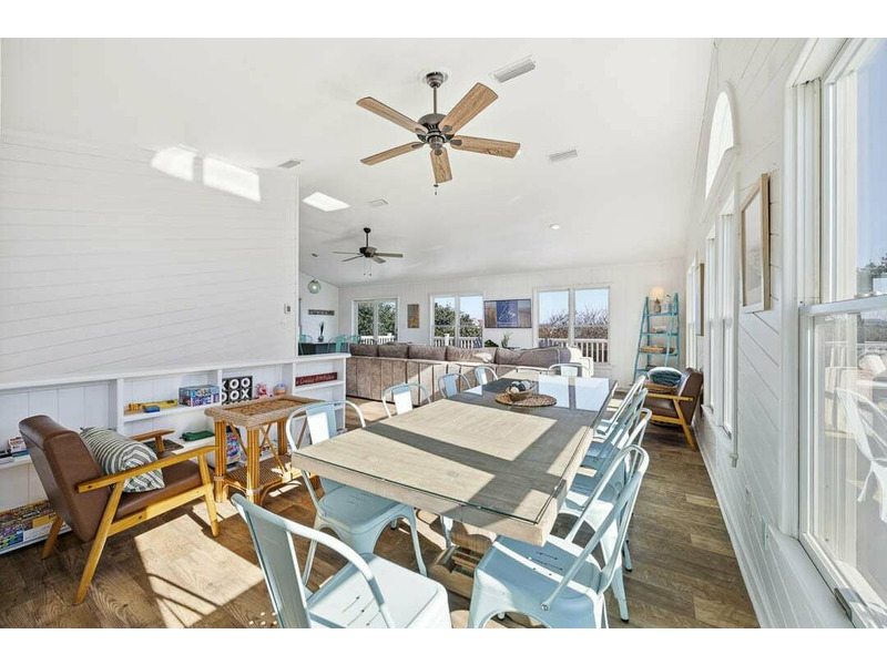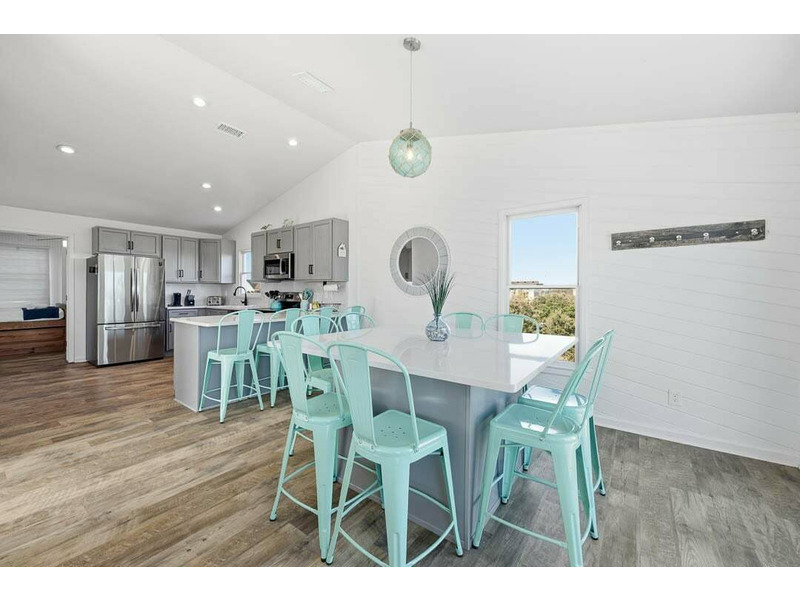 The mid-level boasts three king bedrooms and one queen - all with an en suite bathroom and beautiful tile shower - and a screened-in porch and open deck to savor the ocean breeze. The ground-level has everything needed to keep kids and teens occupied: a kitchenette, couch and small dining table with banquette seating, multiple TVs (including gaming chairs), and a pool table!