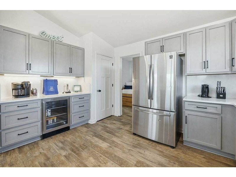 A multi-level wraparound deck makes it easy to enjoy the outdoors, with the hedge of trees offering privacy, whether enjoying an afternoon read and laying out out by the heated private pool. Relax in the hot tub, or underneath the shaded cabana if you'd prefer to cool off. The grilling area is right outside the pool fence, so bringing burgers and hot dogs to the pool deck is only a few steps away – and the open yard on the side of the house gives Fido plenty of space to play, too!