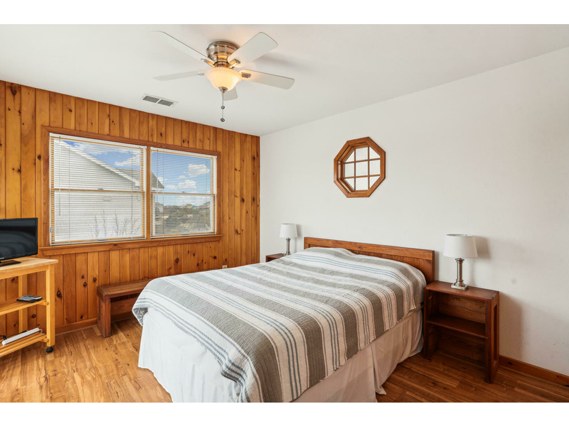 Upper Level: Queen Bedroom, Newly renovated Full bath, great room, dining area, kitchen, screened porch, flood lights for pool.
