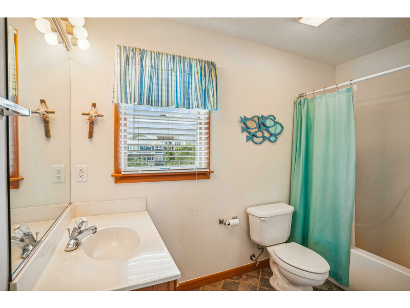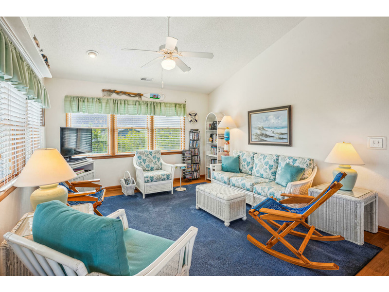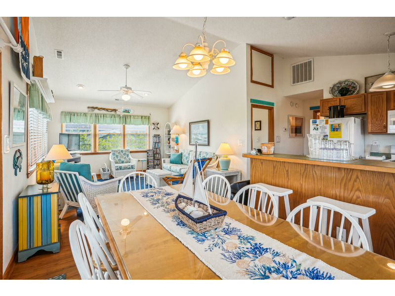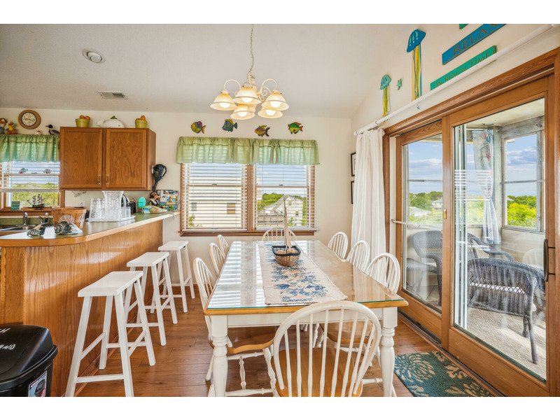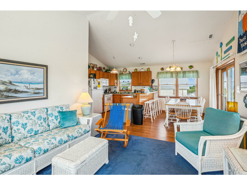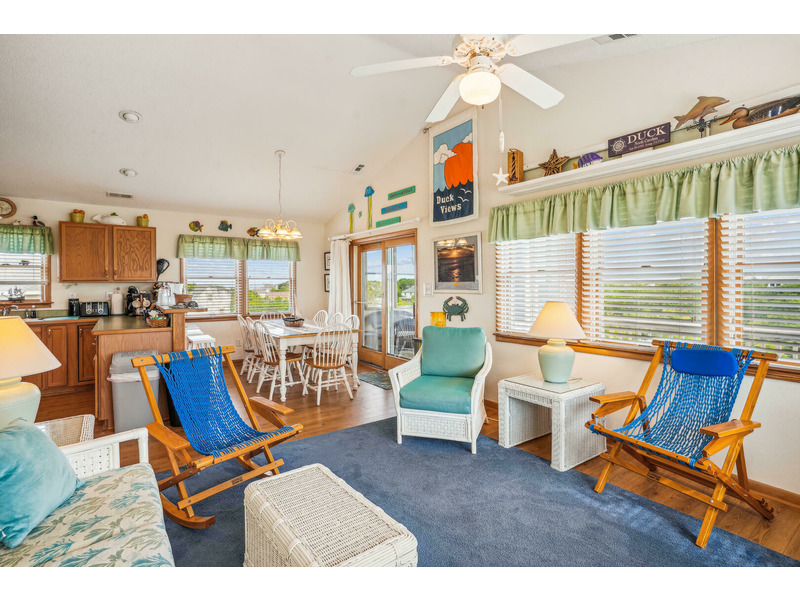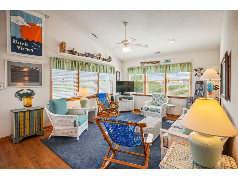 Casually eat outside on the picnic table, or enjoy lounging in the exterior sitting area while watching your favorite show or ball game on the outdoor TV. Head upstairs to the top level screened in porch to enjoy the weather without enduring the heat or insects. Create lasting memories in the spacious dining and living areas while watching the gorgeous sunset over the Currituck Sound, which you can see from your sundeck. Beach chairs and toys are also here for your convenience. Don't forget to check out Scarborough Faire for a unique and boutique shopping experience located less than 1 mile away. "Duck Views" is incredibly close to some of the most renowned restaurants the Outer Banks has to offer, including The Blue Point, NC Coast Grill, and Roadside Bar and Grill.