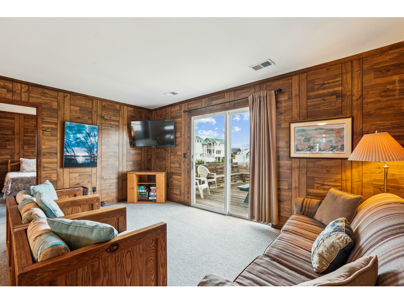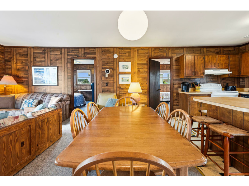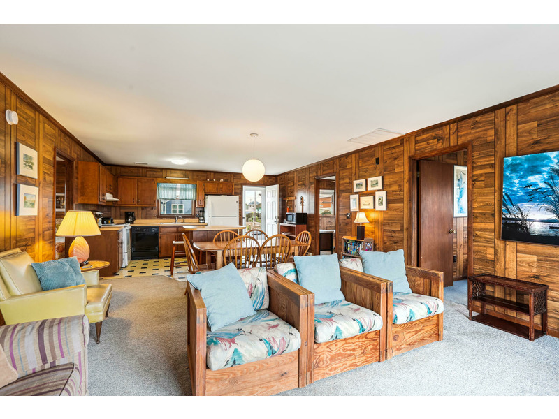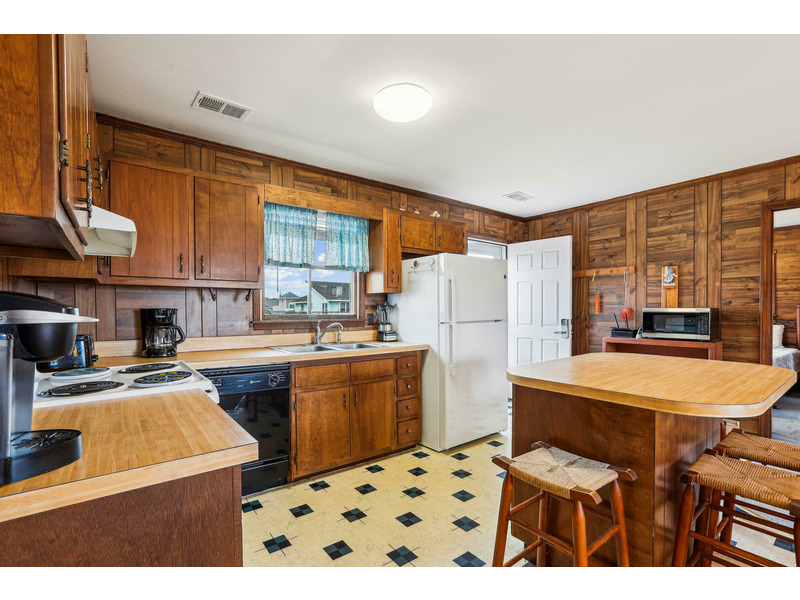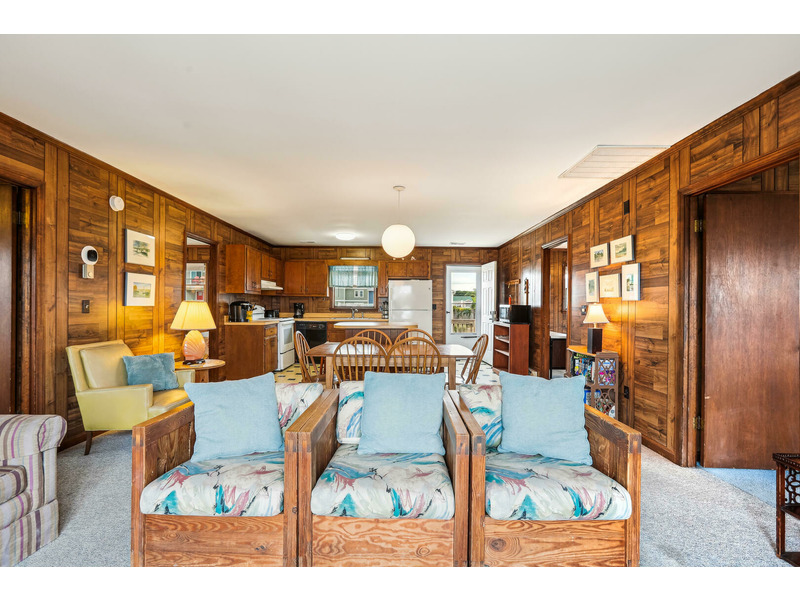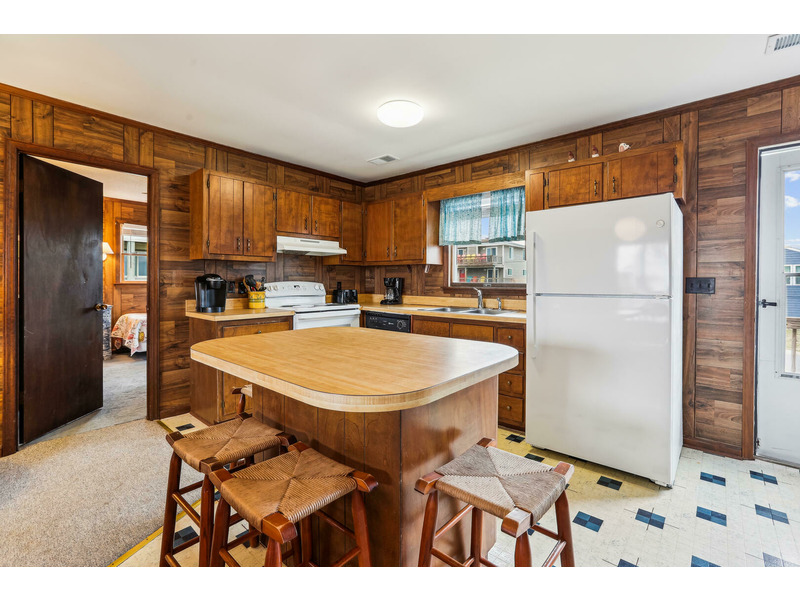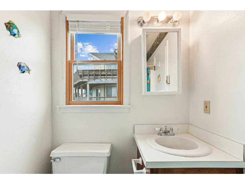Ground Level: Laundry Room, storage area, outside shower, grill, off-street parking enough for 4 cars. Main Level: Living, Dining, Kitchen Area with breakfast bar, 2 Bedrooms and a Full Bath on each end.